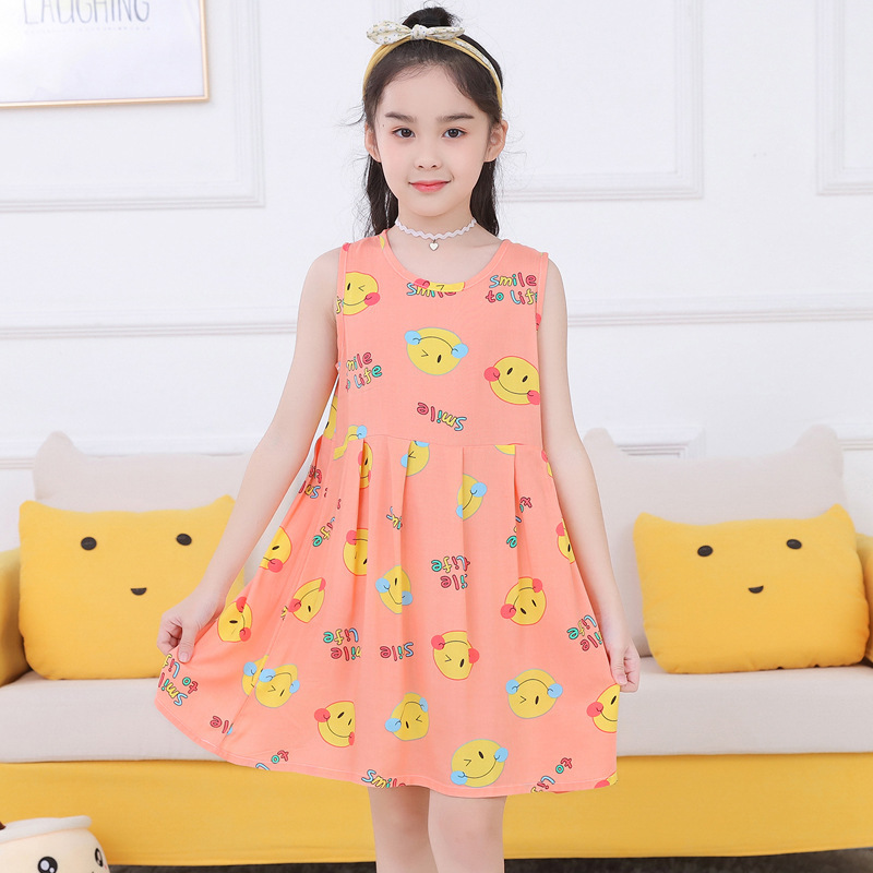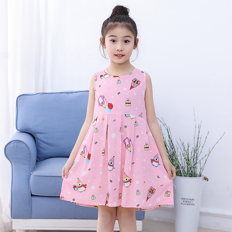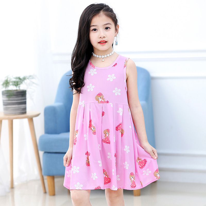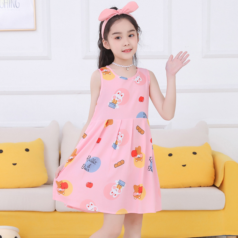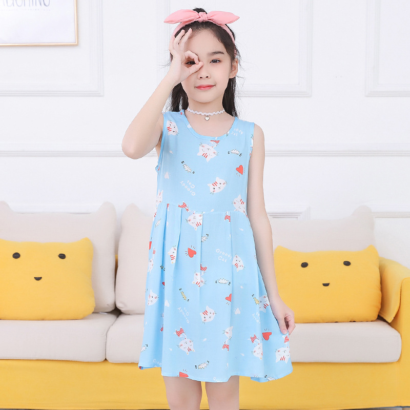夏季新款绵绸儿童睡裙中小童清凉透气连衣裙女童可爱印花一件代发