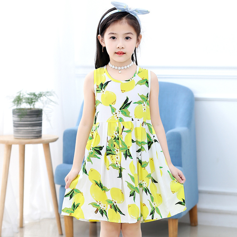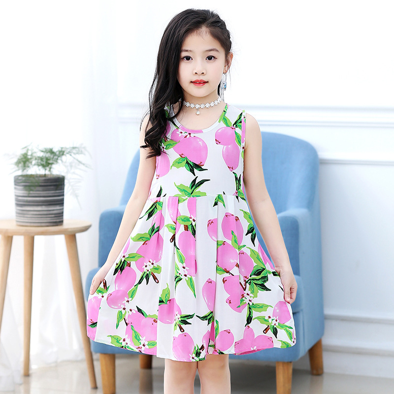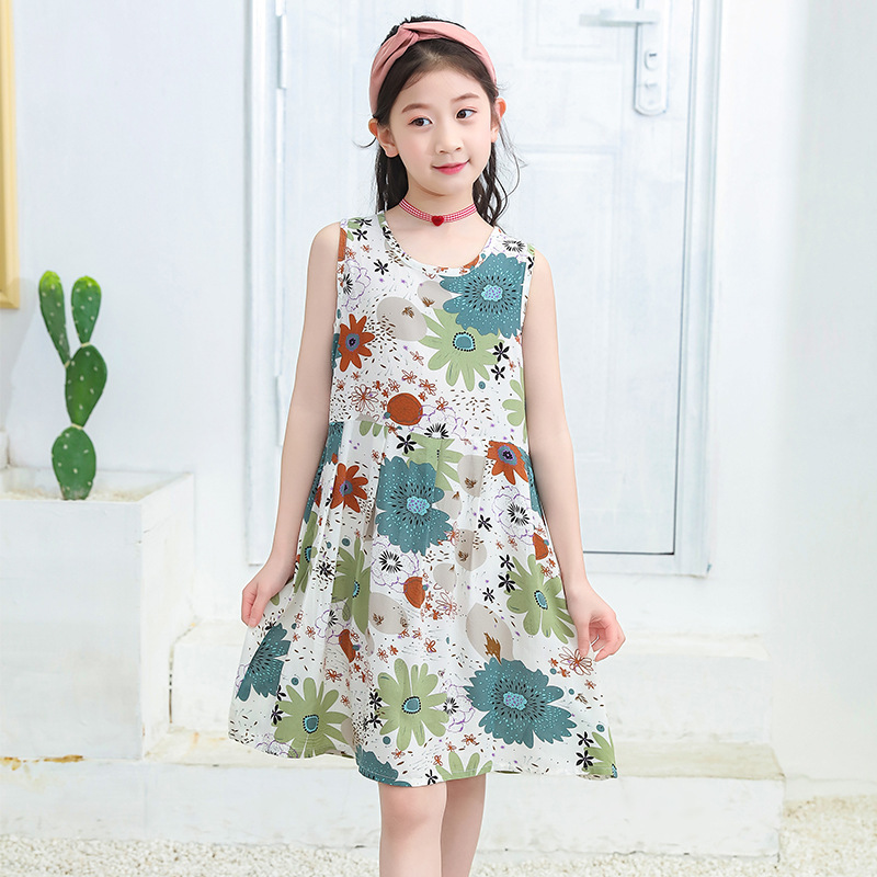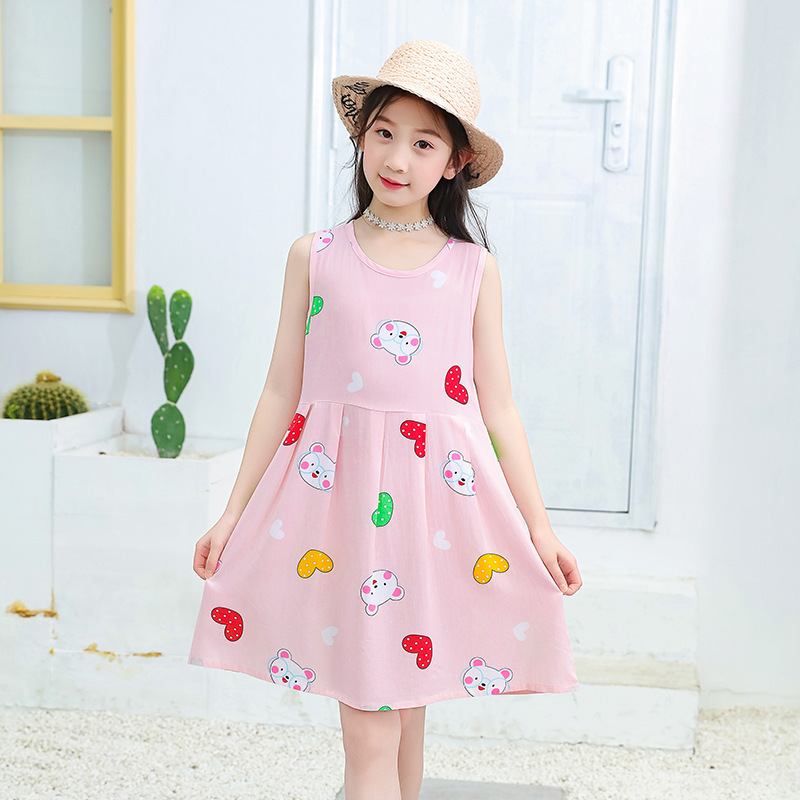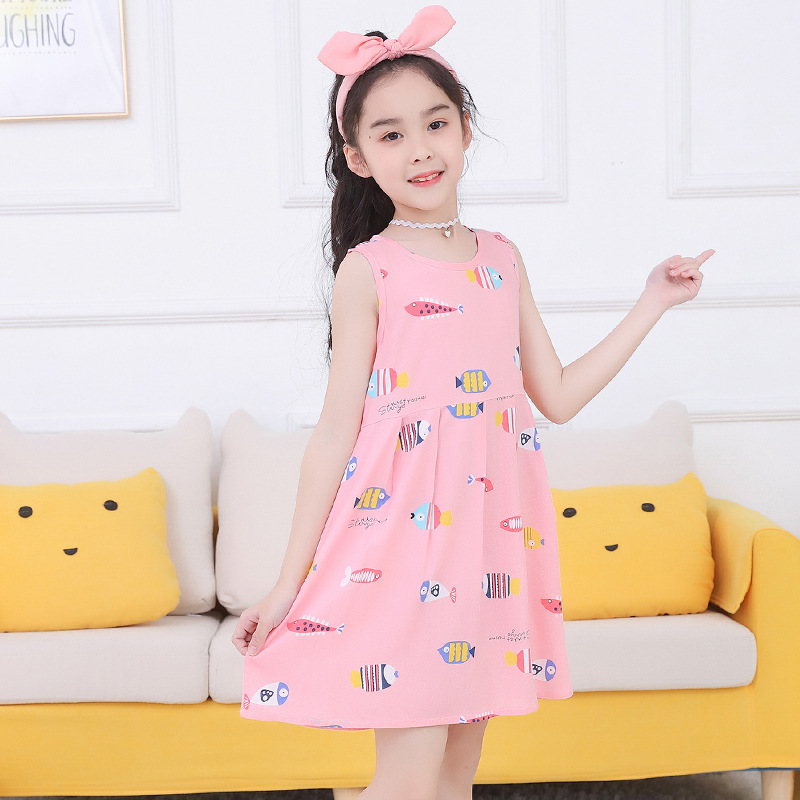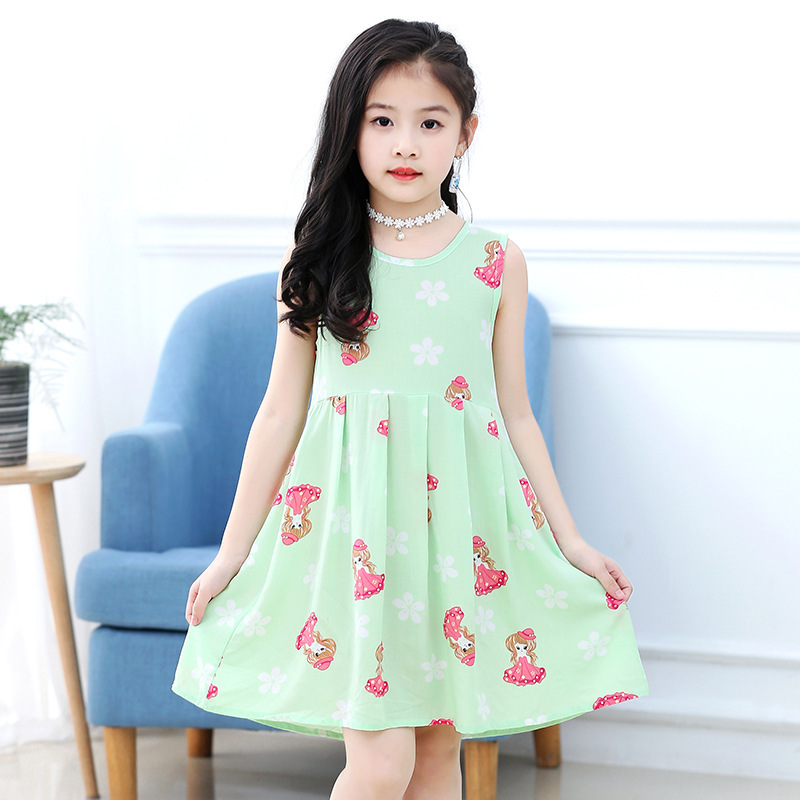 夏季新款绵绸儿童睡裙中小童清凉透气连衣裙女童可爱印花一件代发