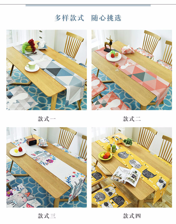 北欧桌旗盖巾百搭现代简约布艺棉麻餐桌布电视柜茶几桌布台布麋鹿