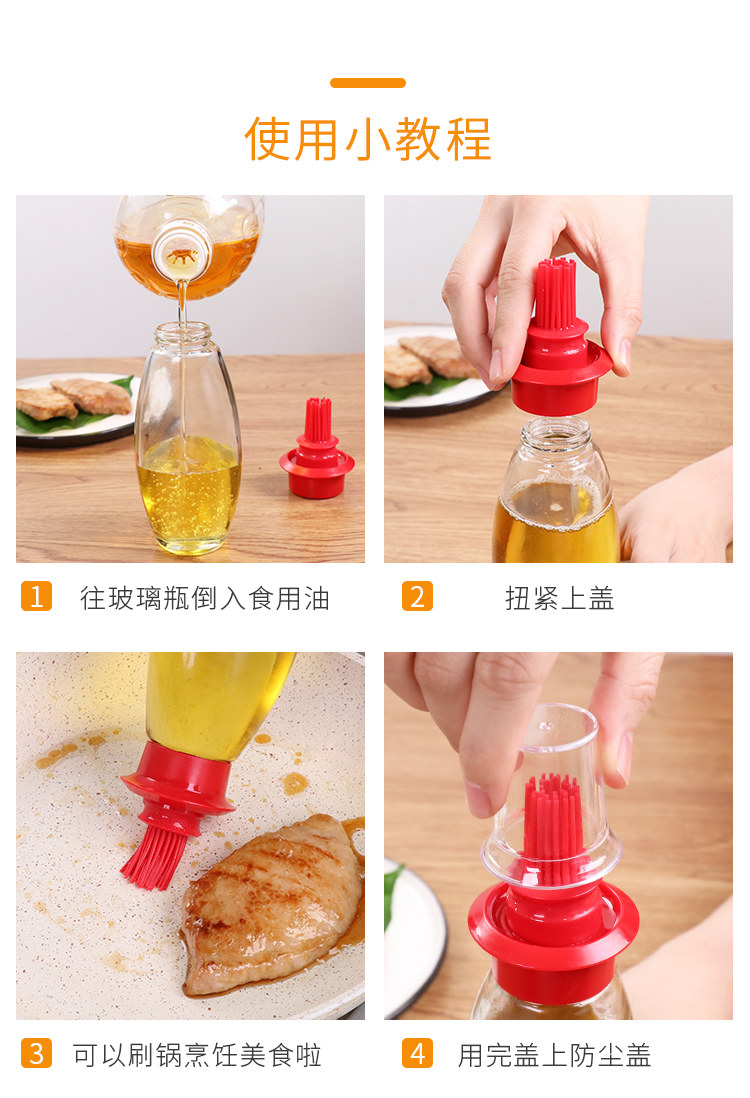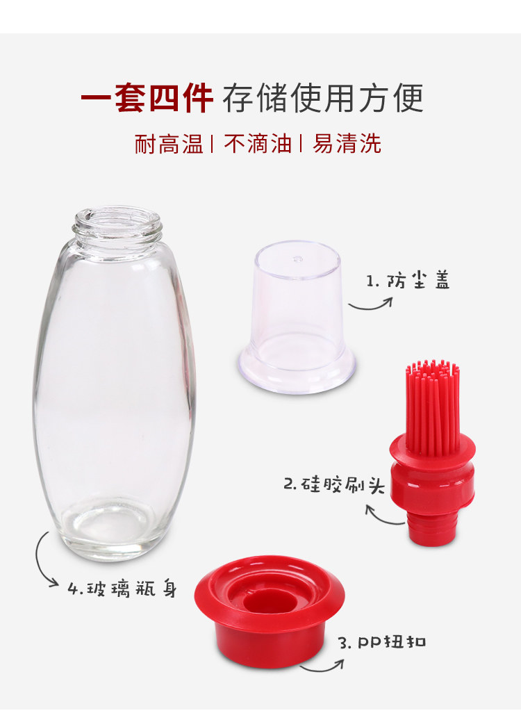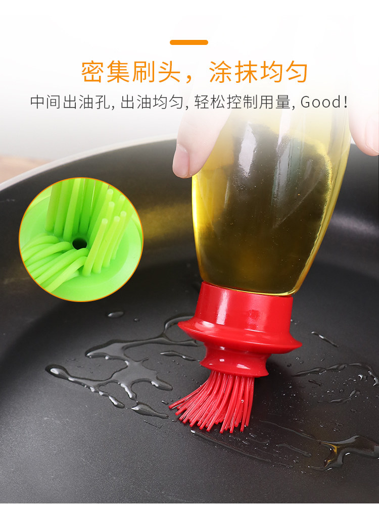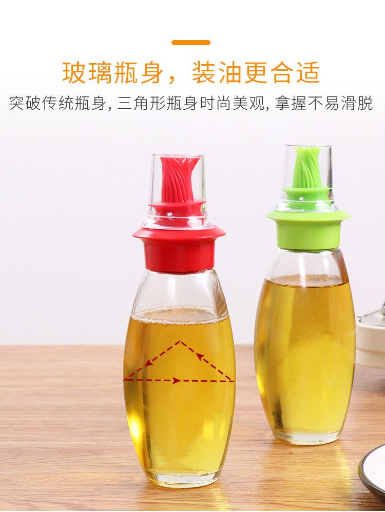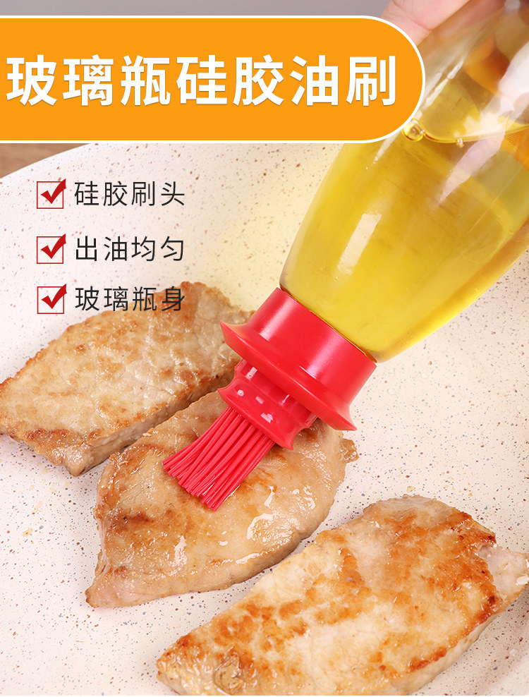 带硅胶刷头玻璃油壸耐高温油刷子厨房烙饼烧烤刷两用家用装油瓶批