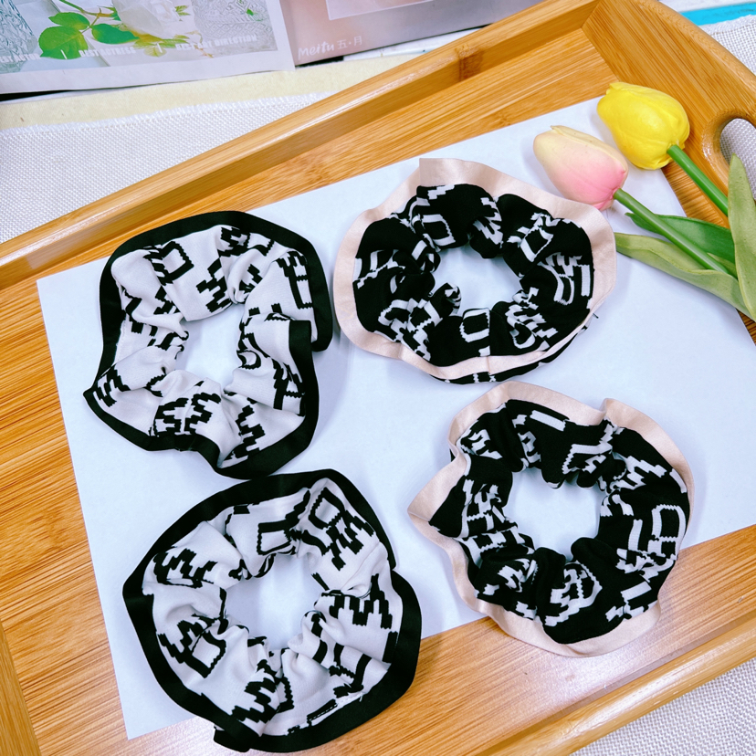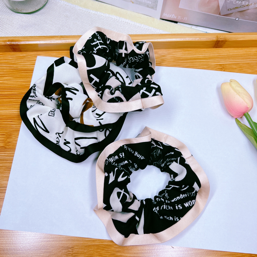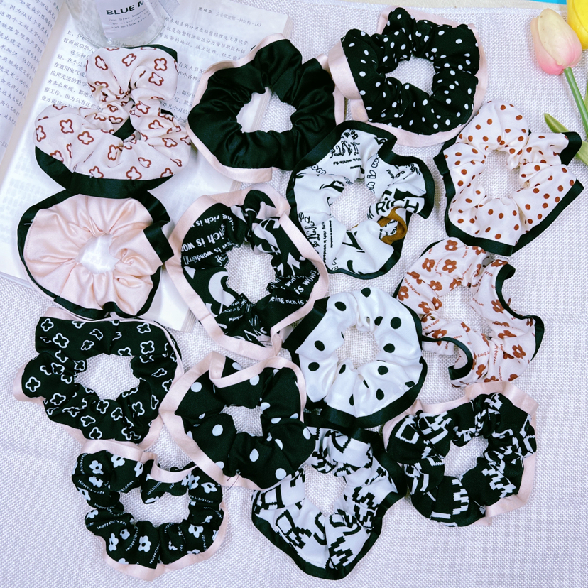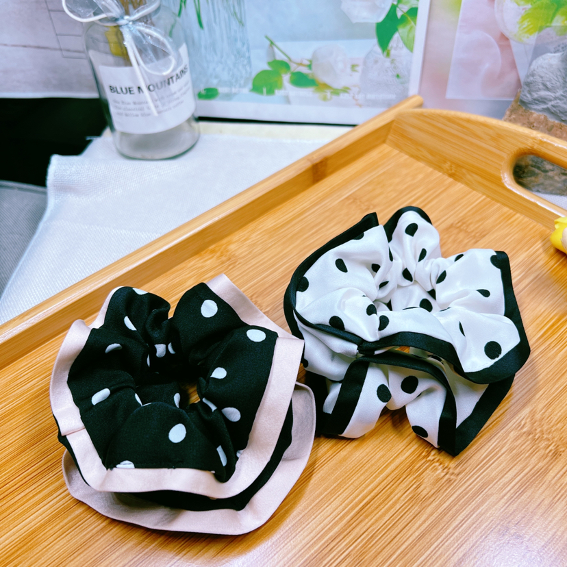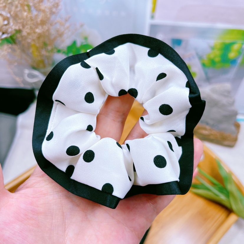永爱玖爱发圈洋气时髦米白黑色复古百搭波点花大肠圈扎头皮筋头花