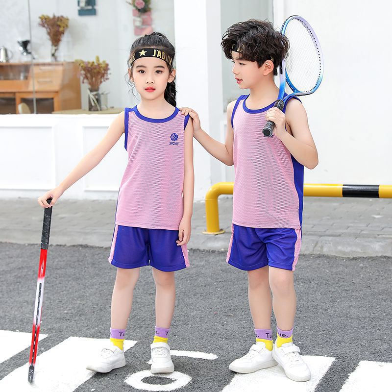 儿童速夏季干短袖套装新款男女童篮球网眼透气两件套中小童运动服