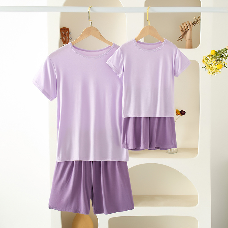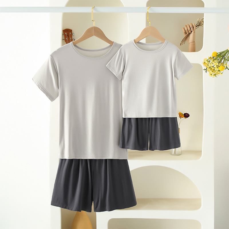 2022亲子家居服夏季儿童睡衣套装中小童莫代尔短袖短裤空调服