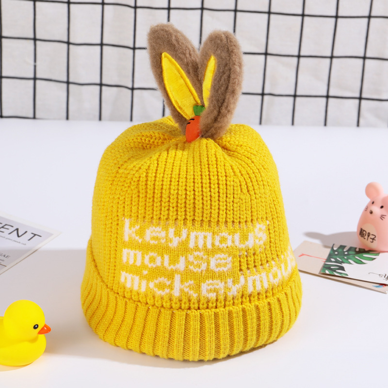 帽子秋冬款毛球毛线针织帽子包芯纱厚宝宝婴儿保暖防护套头帽