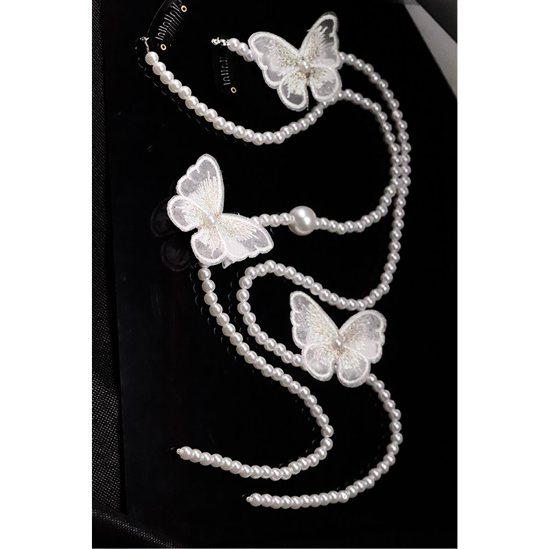 杨超越同款珍珠发饰流苏发链条发夹网红编发发带蝴蝶夹子头饰发卡