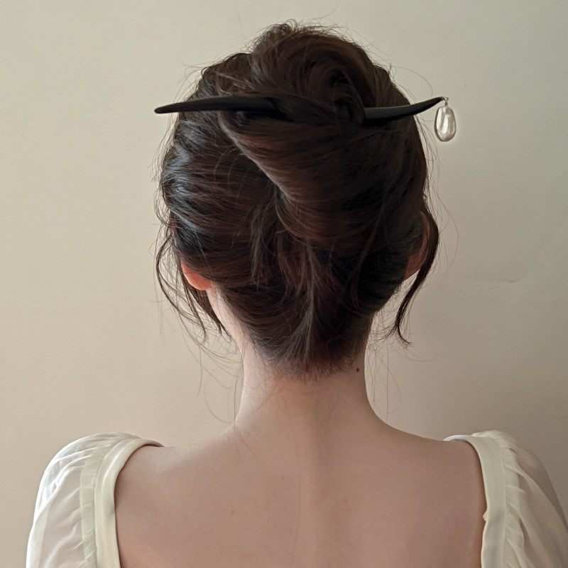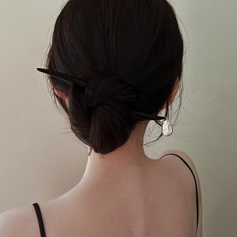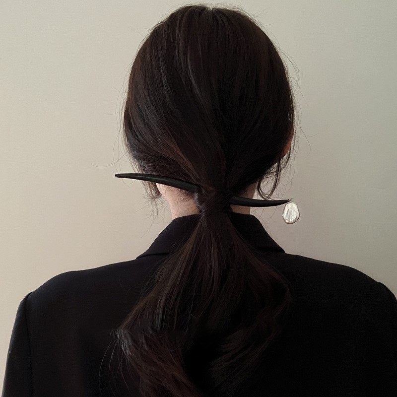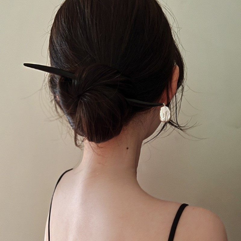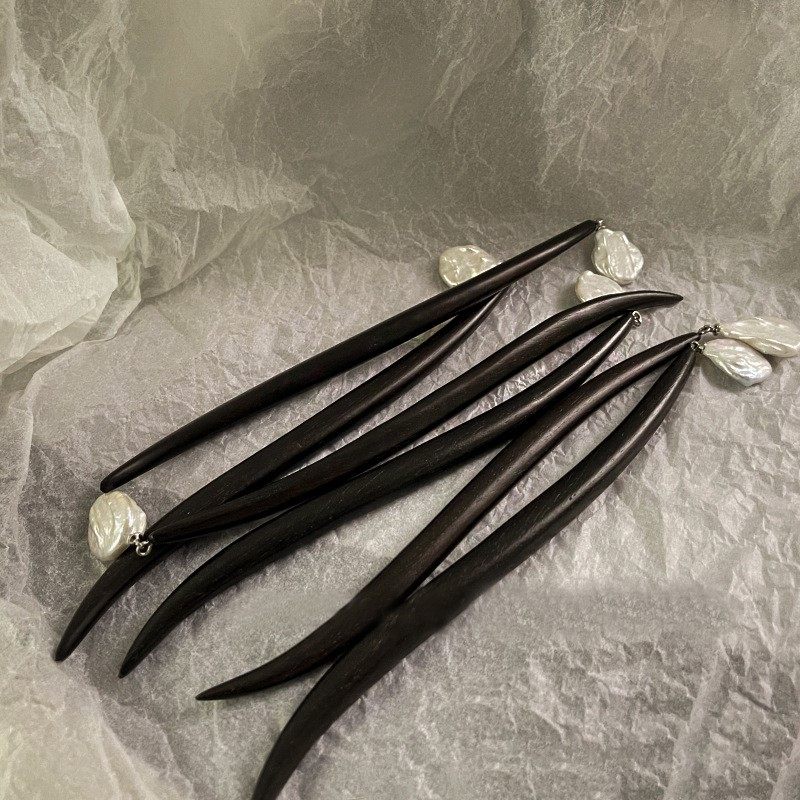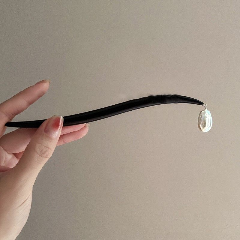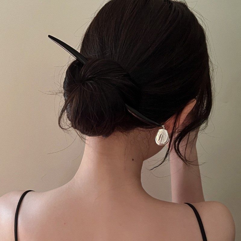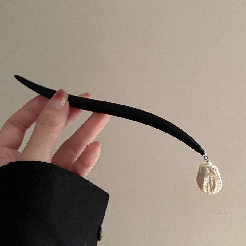 气质古典巴洛克异形珍珠贝珠不规则木质发簪盘发风感