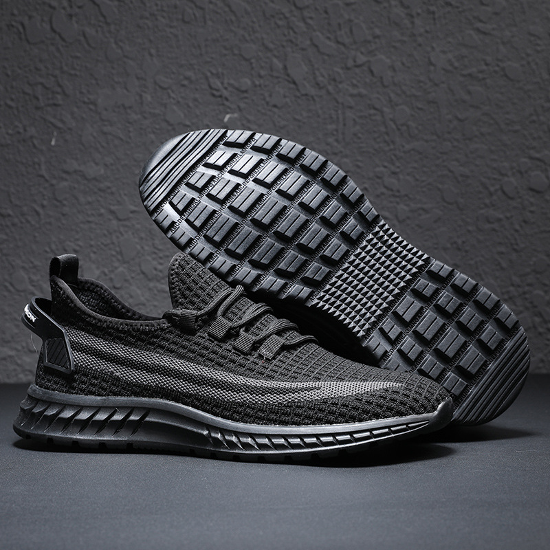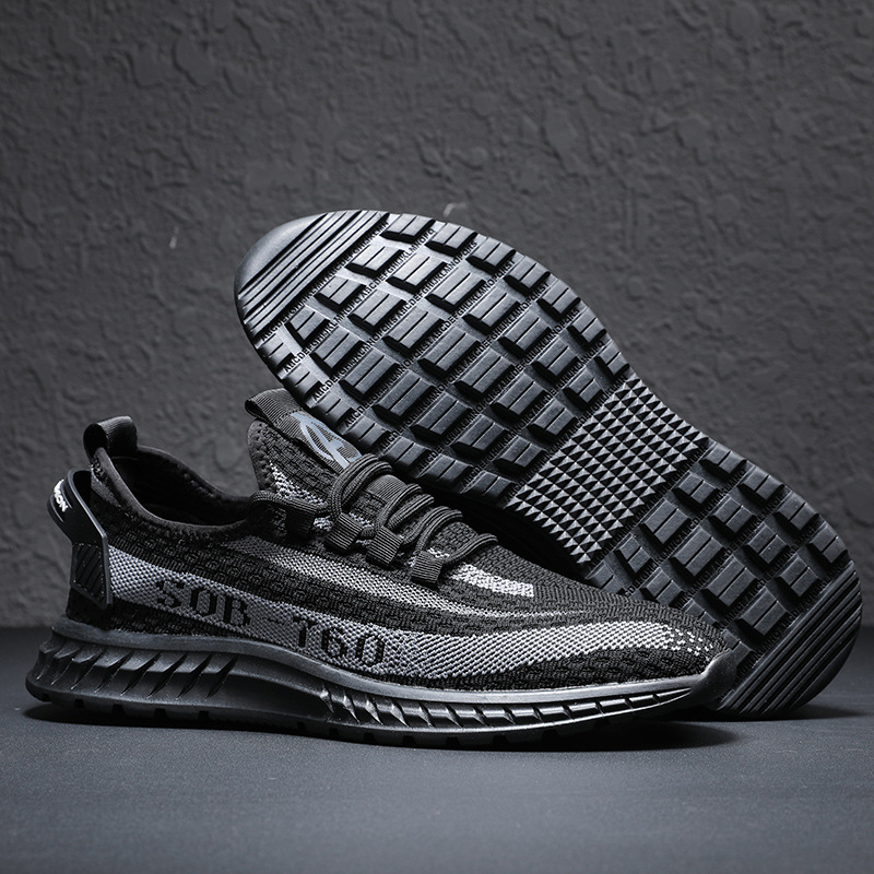 新款飞织透气椰子男鞋潮流休闲黑色运动鞋男式网面系带跑步鞋男生