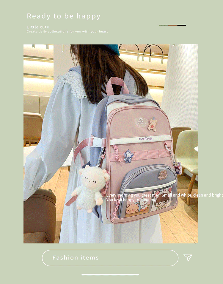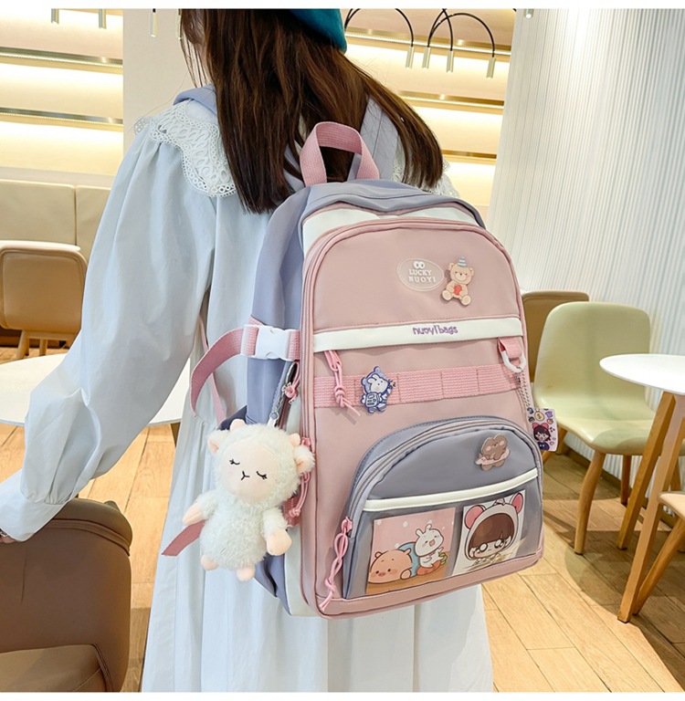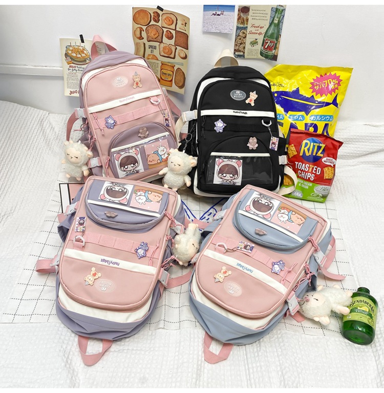 森系休闲撞色日系书包ins女学生初高中原宿背包少女双肩包