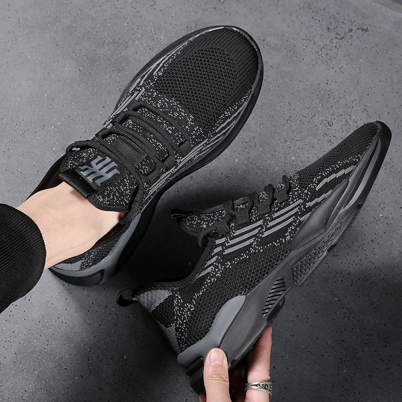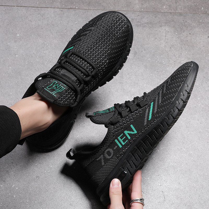 男鞋2022夏季新款透气厚面飞织休闲椰子鞋黑色网面潮鞋时尚运动鞋