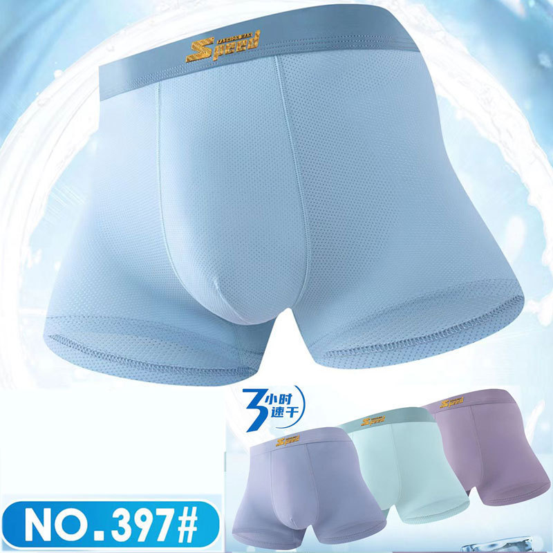 冰丝男士内裤优质3D夏季彩纱男士冰丝锦纶平角内裤142爽