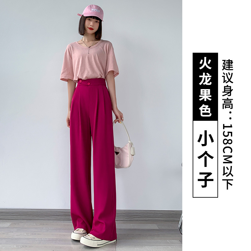 2022新款双排扣火龙果色西装阔腿裤女夏季薄款高腰垂感网红休闲裤