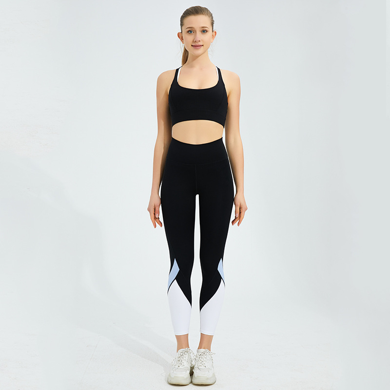 欧美撞色瑜伽服套装女防震跑步运动内衣美背文胸高腰瑜伽裤健身裤