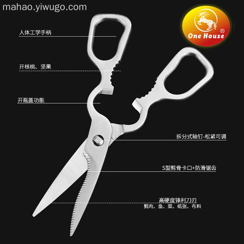 不锈钢多功能剪刀开瓶盖开核桃鸡骨鱼肉一体剪
