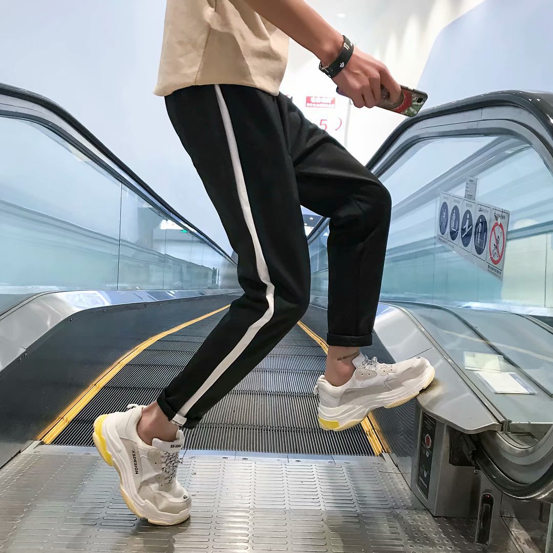 2022春夏季冰丝裤子男长裤束脚哈伦裤宽松小脚裤薄款男士休闲裤