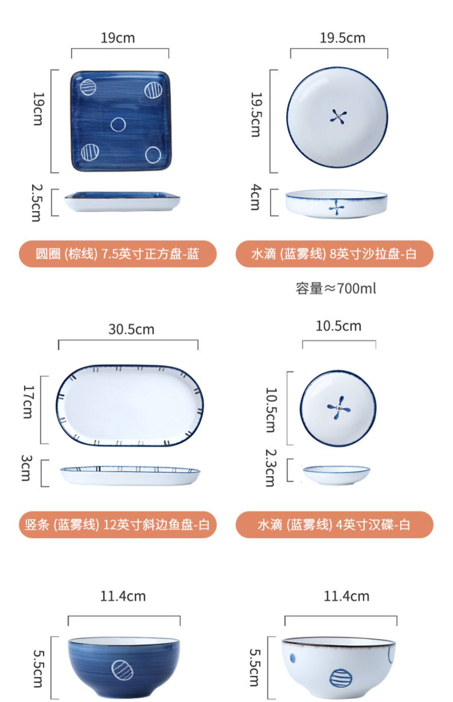 | 8-inch meal tray blue fog line + water drop(8寸饭盘蓝雾线+水滴) | USD $1.38 | 83 piece available |
