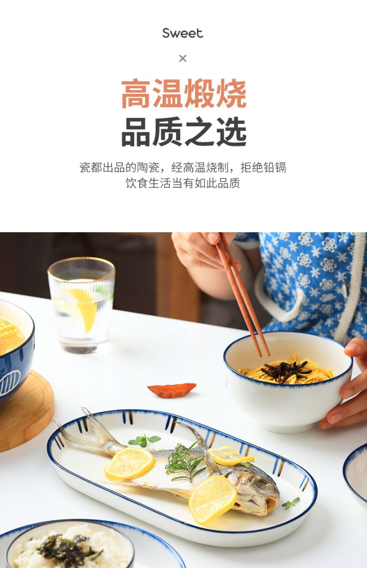 | 12-inch beveled edge fish dish blue fog line + vertical bar(12寸斜边鱼盘蓝雾线+竖条) | USD $1.94 | 44 piece available |
