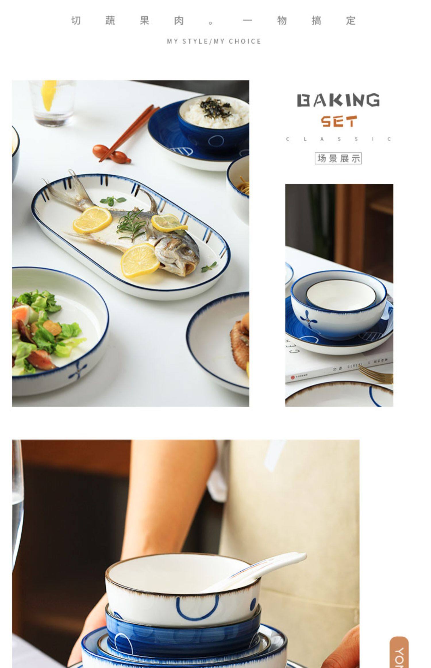 | 14-inch binaural fish dish blue fog line + vertical bar(14寸双耳鱼盘蓝雾线+竖条) | USD $2.51 | 126 piece available |