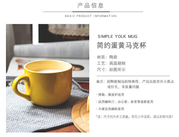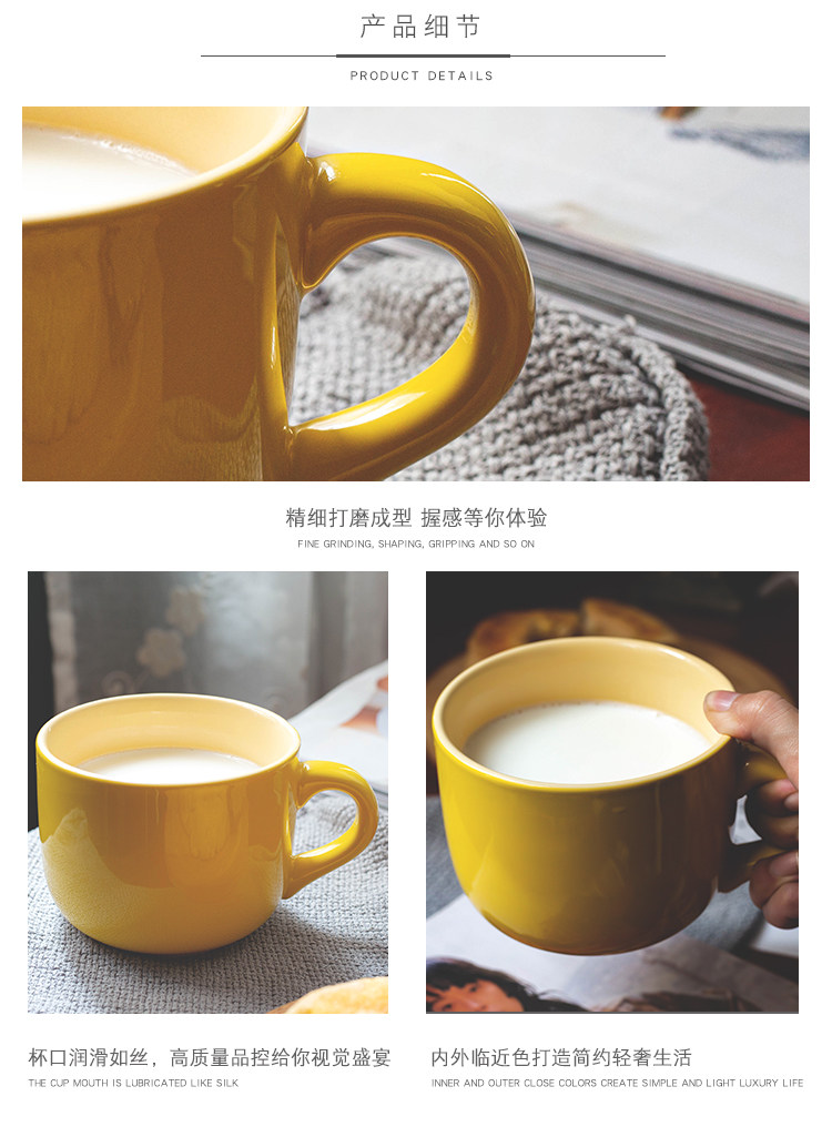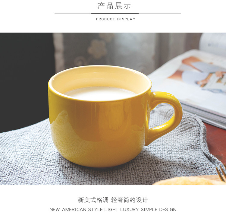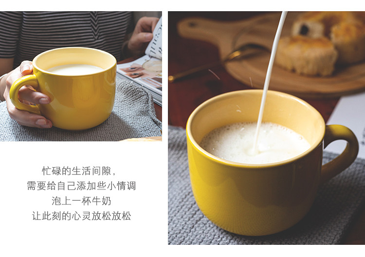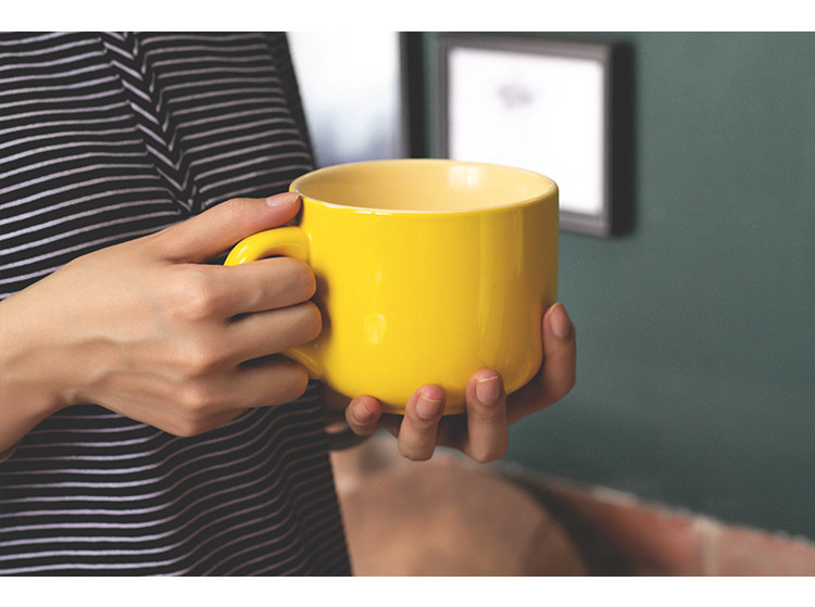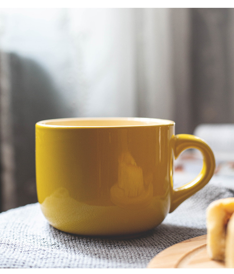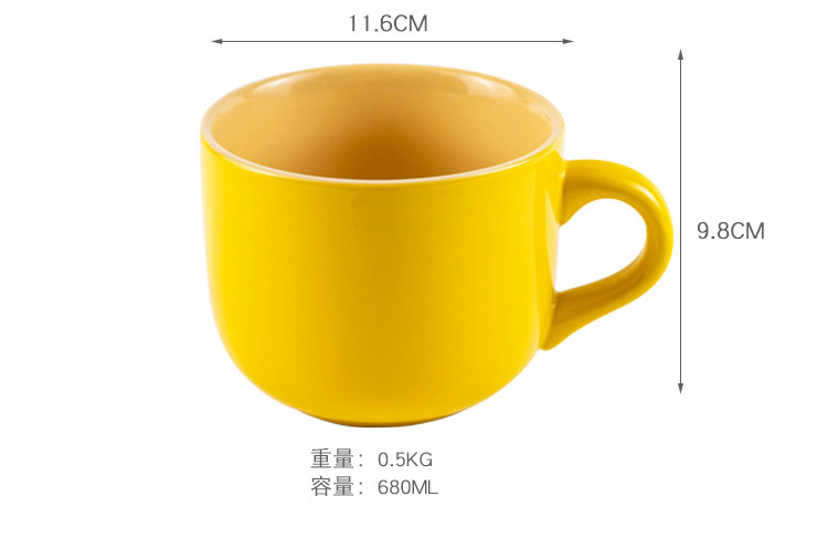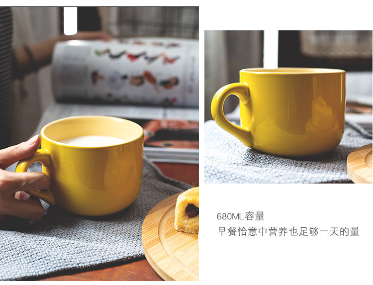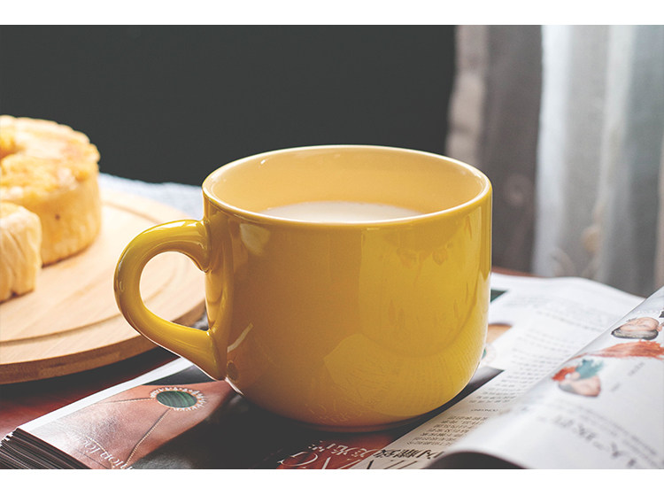 大汤杯陶瓷大号早餐杯燕麦杯牛奶茶杯大容量马克杯黄色早餐碗杯