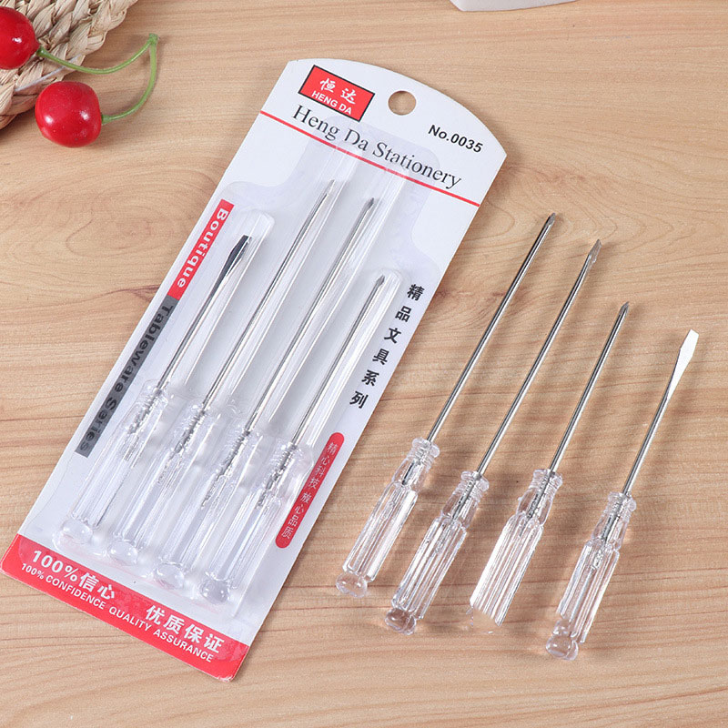 厂家直销4个吸卡装水晶手柄螺丝刀 大小号十字一字套装螺丝刀批发