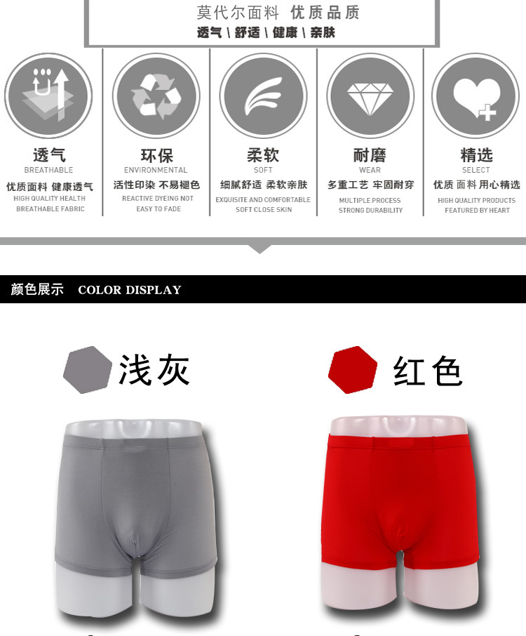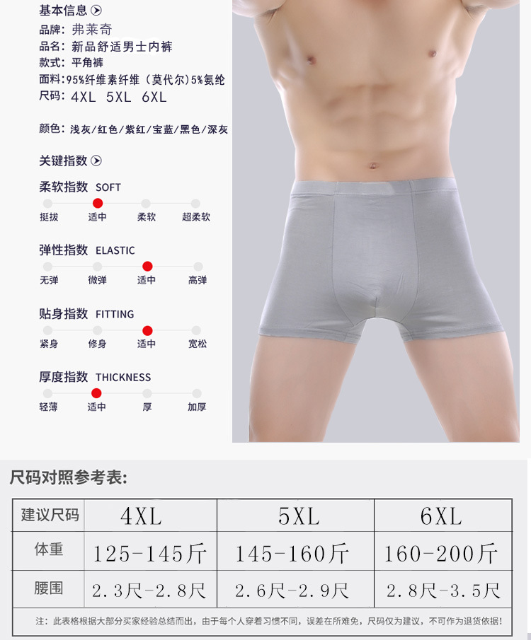 莫代尔棉质男士内裤加肥大码宽松四角裤男式中老年肥佬平角裤头夏