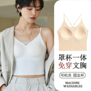 一体式固定杯无痕内衣女小胸聚拢一片式调整型背心式无钢圈文胸罩