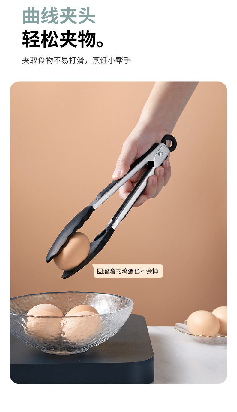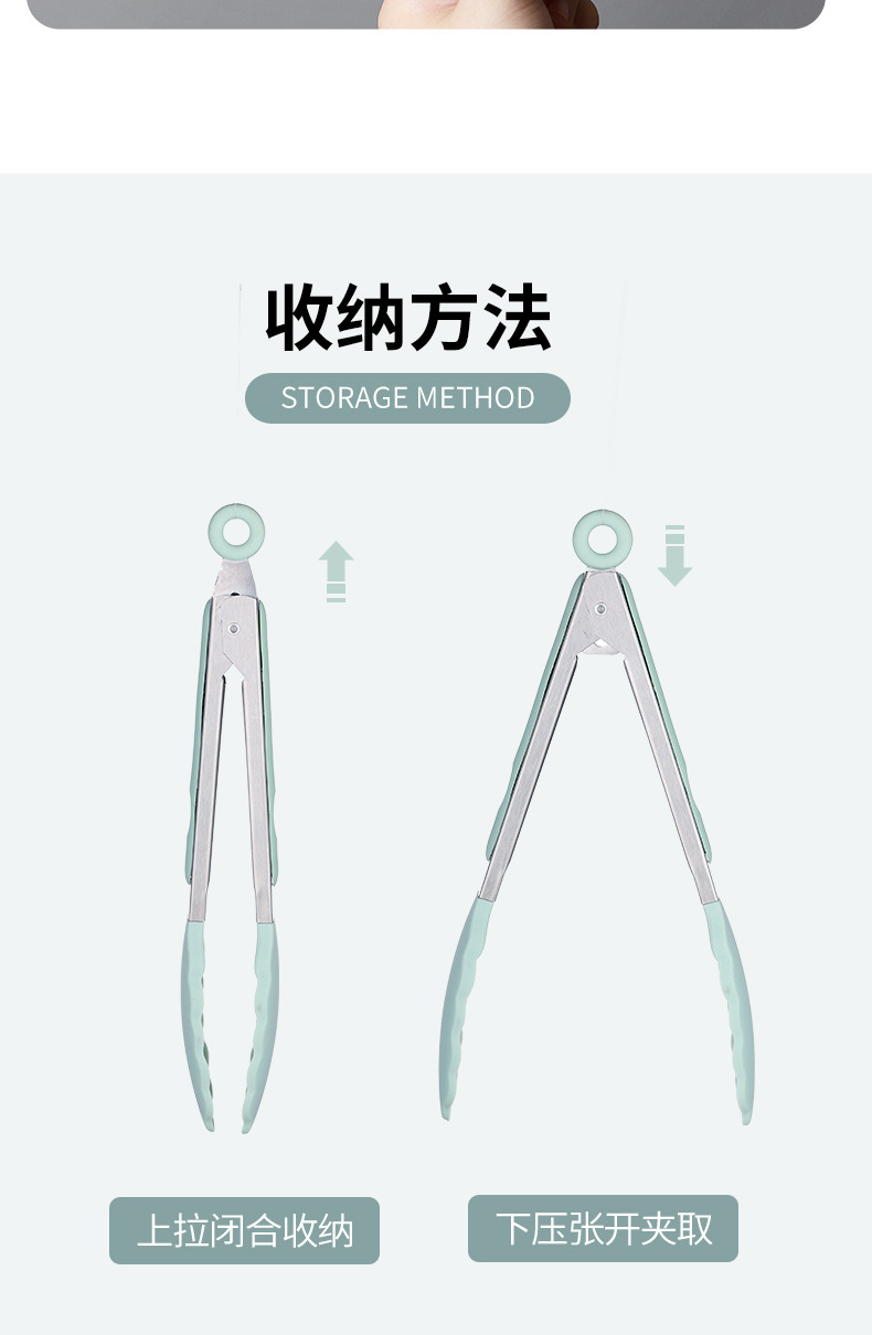 【悦禧厨】9寸不锈钢硅胶夹子厨房烧烤肉面包食品夹防烫煎牛排