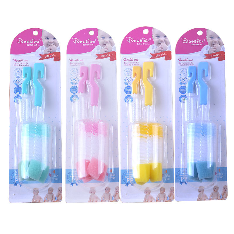 外贸大号 婴儿奶瓶刷子奶嘴刷 带挂钩清洁海绵头吸卡包装奶瓶刷