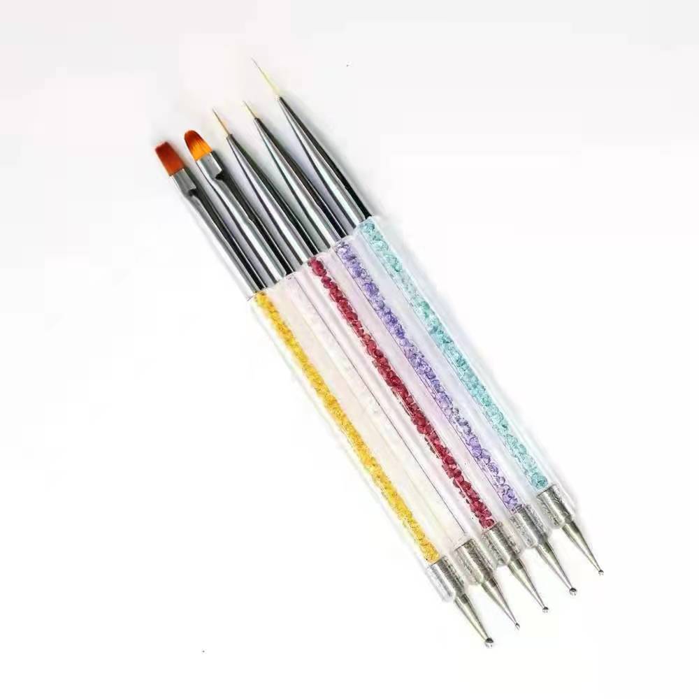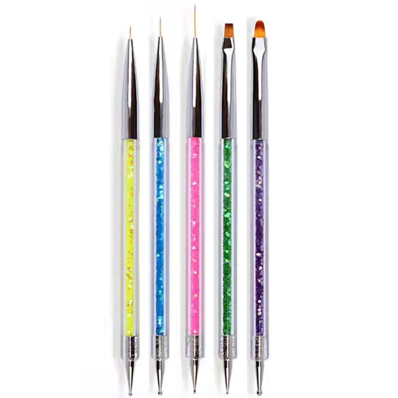 厂家直供双头点钻彩绘笔拉线笔点花针勾线笔5支两用美甲笔套装