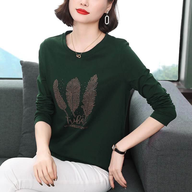 长袖t恤女,棉制上衣大码2022年新款中年妈妈春装女士t桖宽松