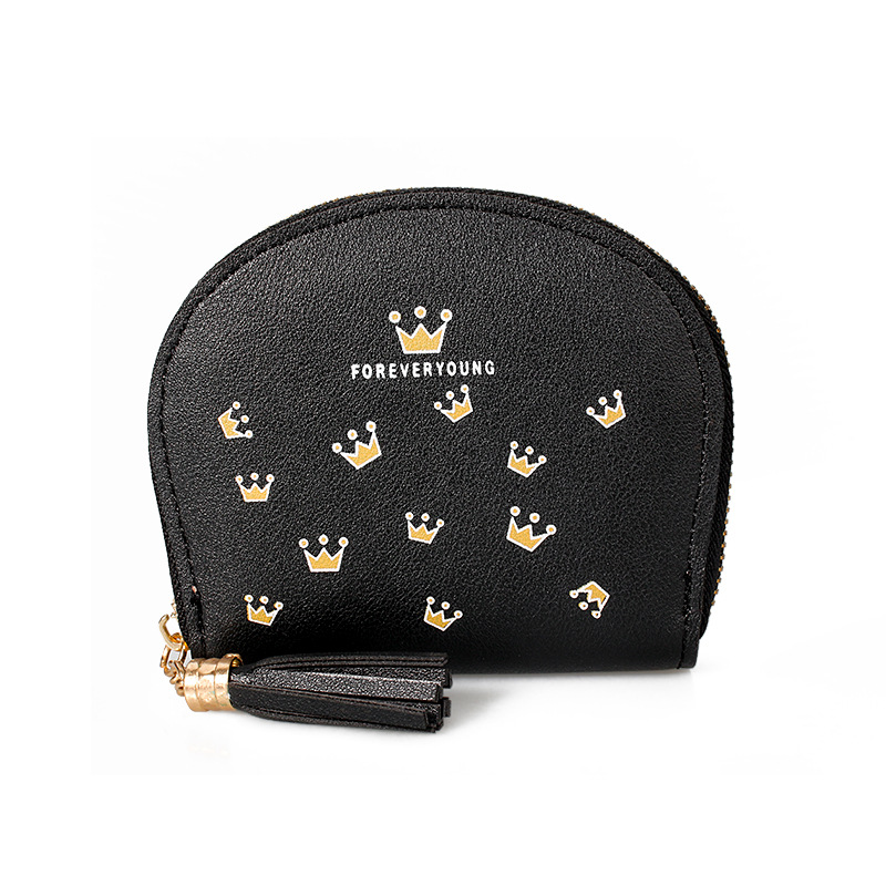 Zipper bag现货印花半圆零钱包短款皇冠包女可爱拉链卡通学生钱包