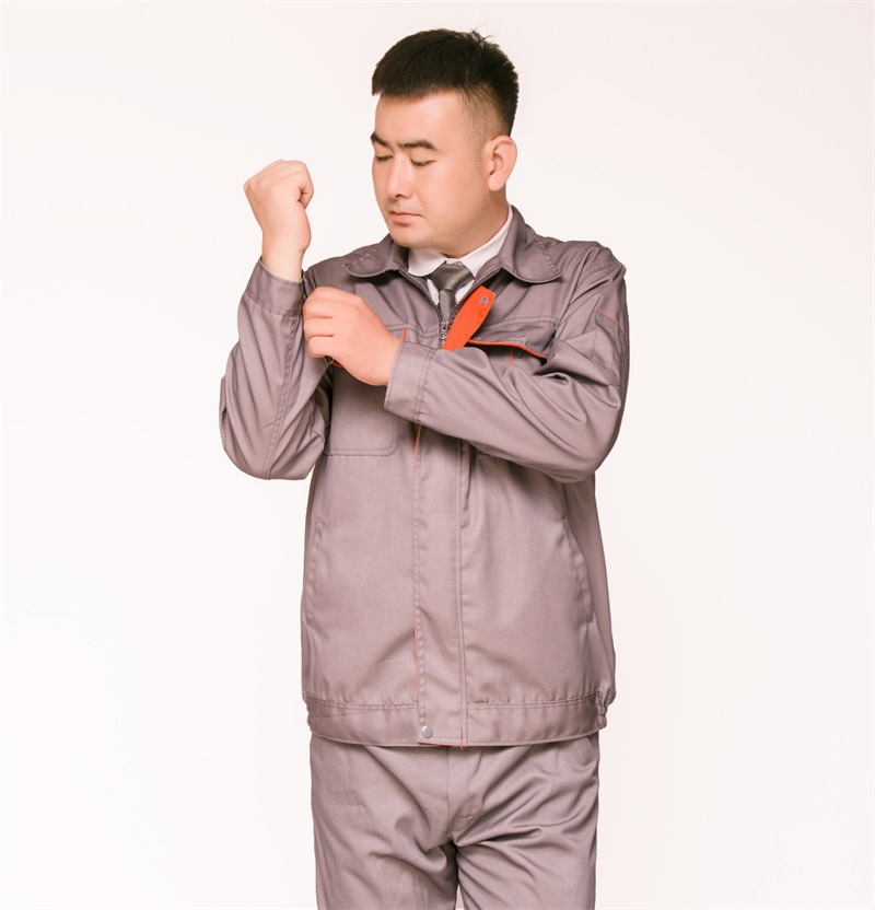 厂家批发灰桔块长袖劳保工作服套装 工厂车间工作服 定制劳保服装