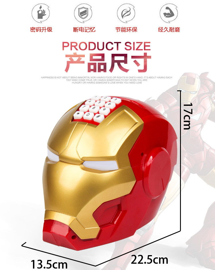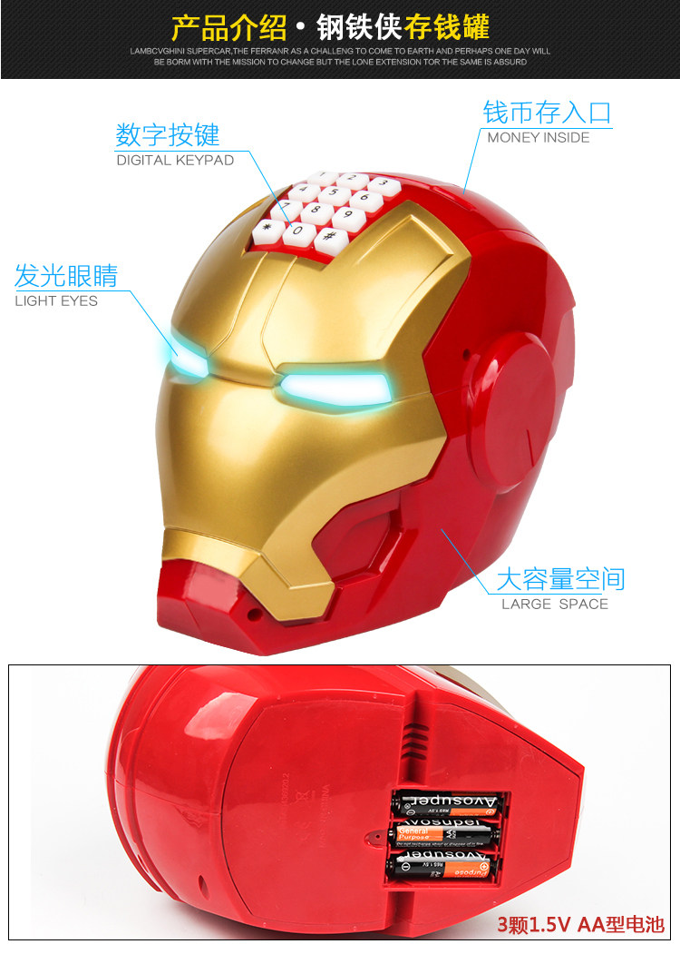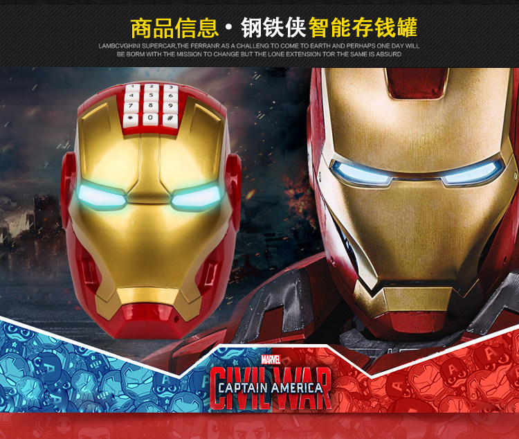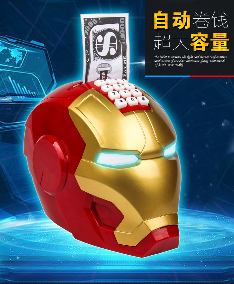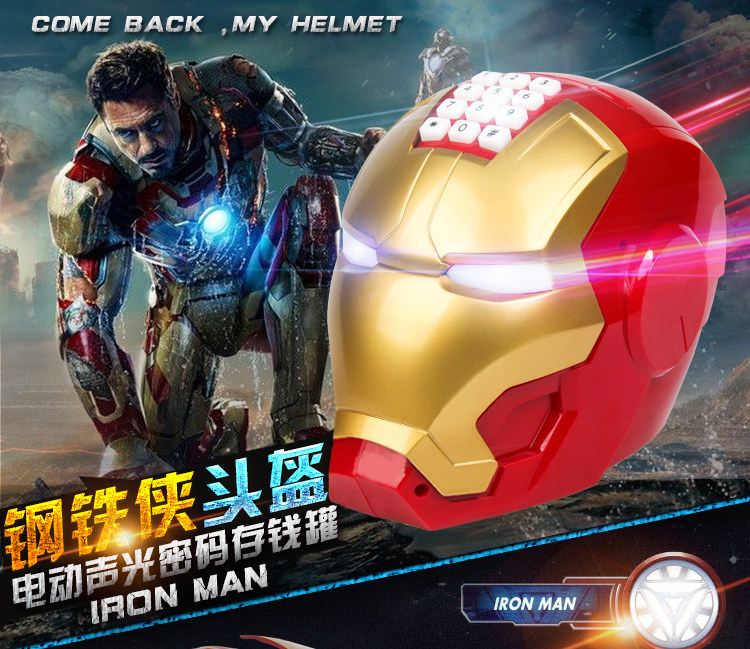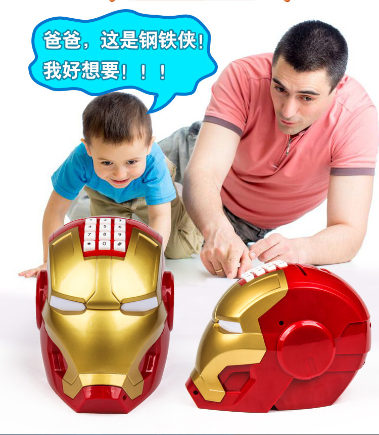 防摔钢铁侠头盔密码存钱罐储钱罐储蓄罐玩具手办摆件创意生日礼物