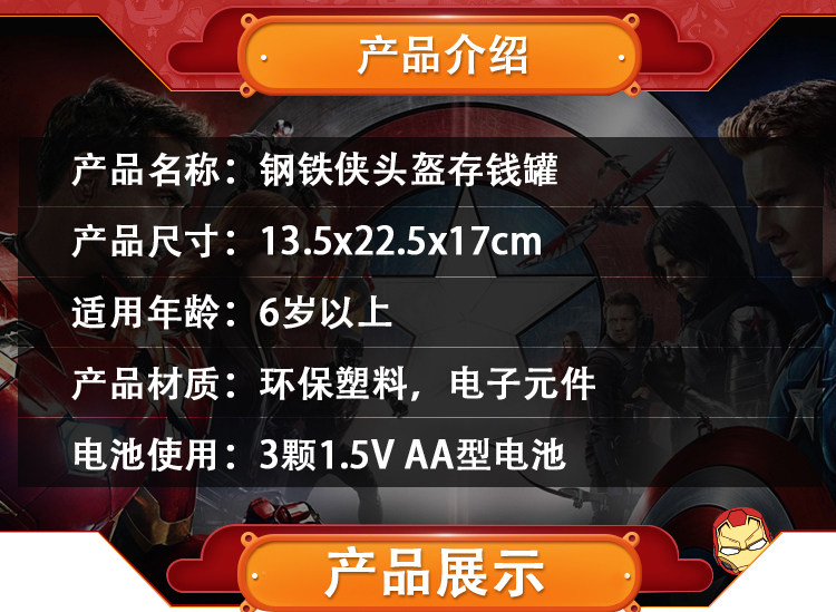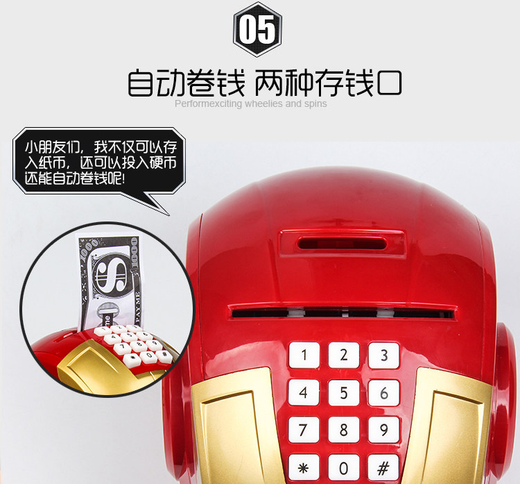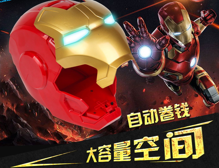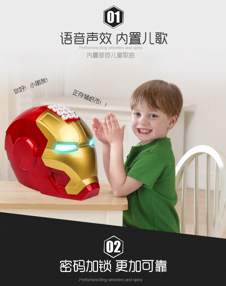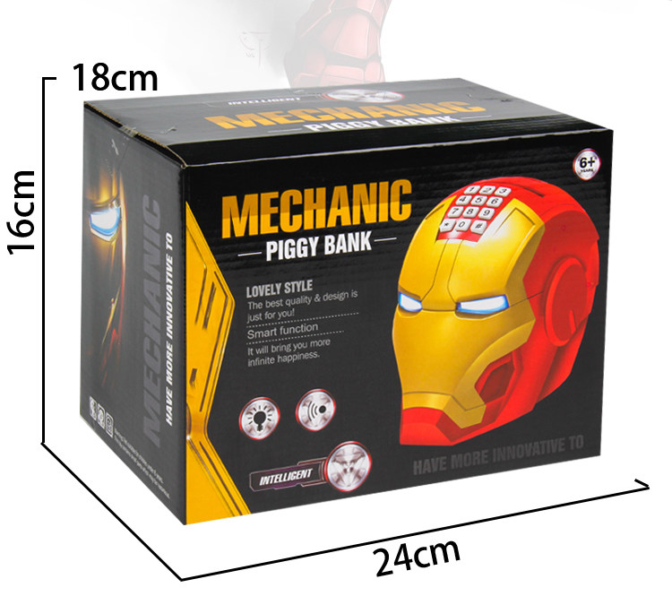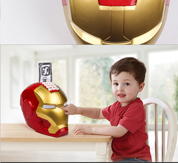 防摔钢铁侠头盔密码存钱罐储钱罐储蓄罐玩具手办摆件创意生日礼物