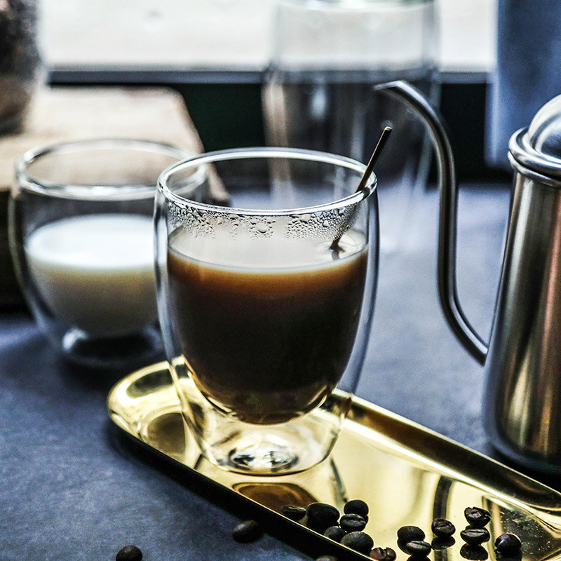 蛋形高硼硅双层玻璃水杯子透明耐热咖啡杯果汁杯花茶杯