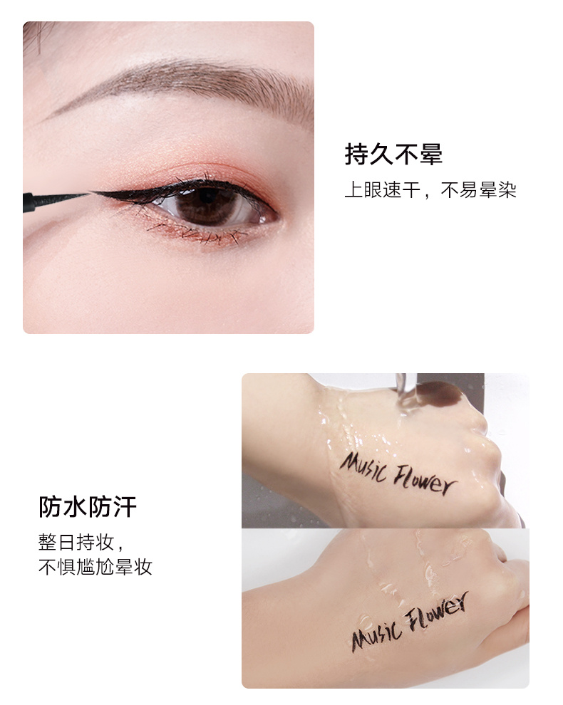 Music Flower正品黑色眼线液不晕染不脱妆防水防汗眼线液眼线笔