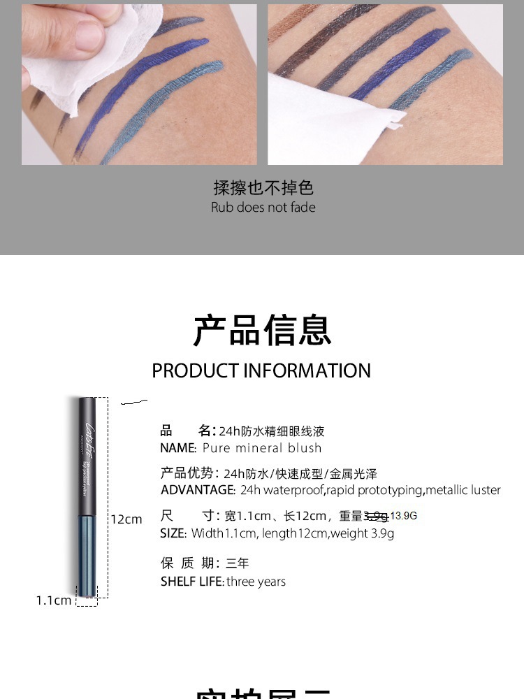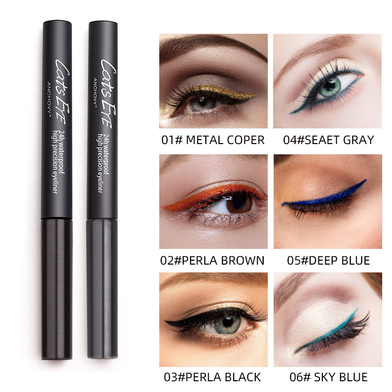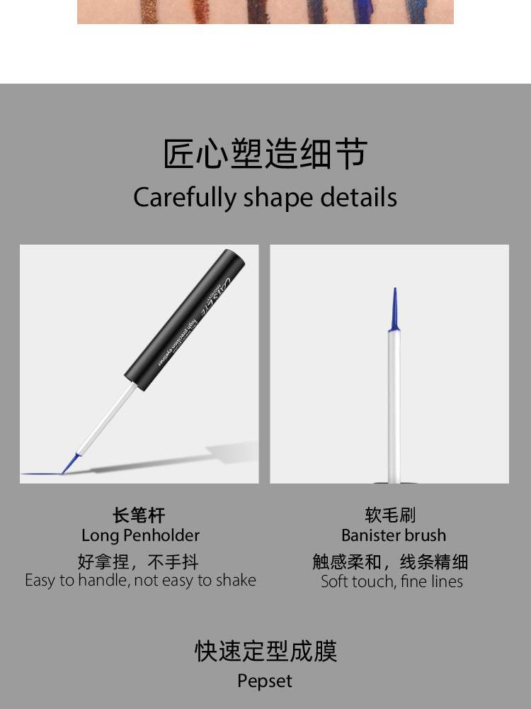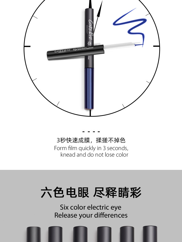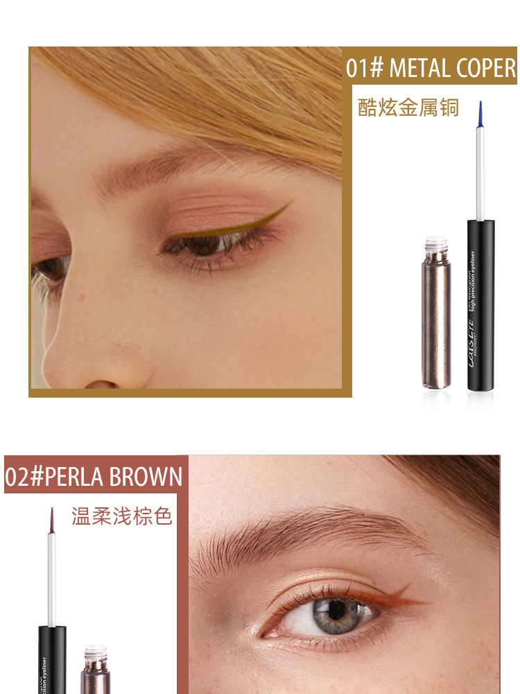 跨境 彩色眼线液 细刷头眼线笔 黑色眼线液 金色眼线笔眼线笔软头