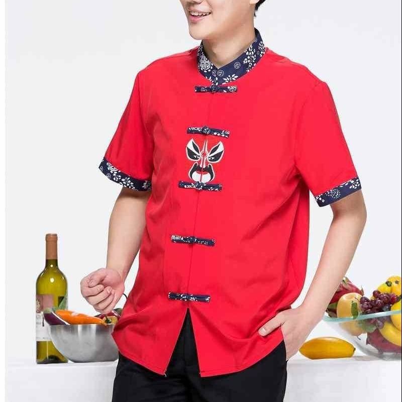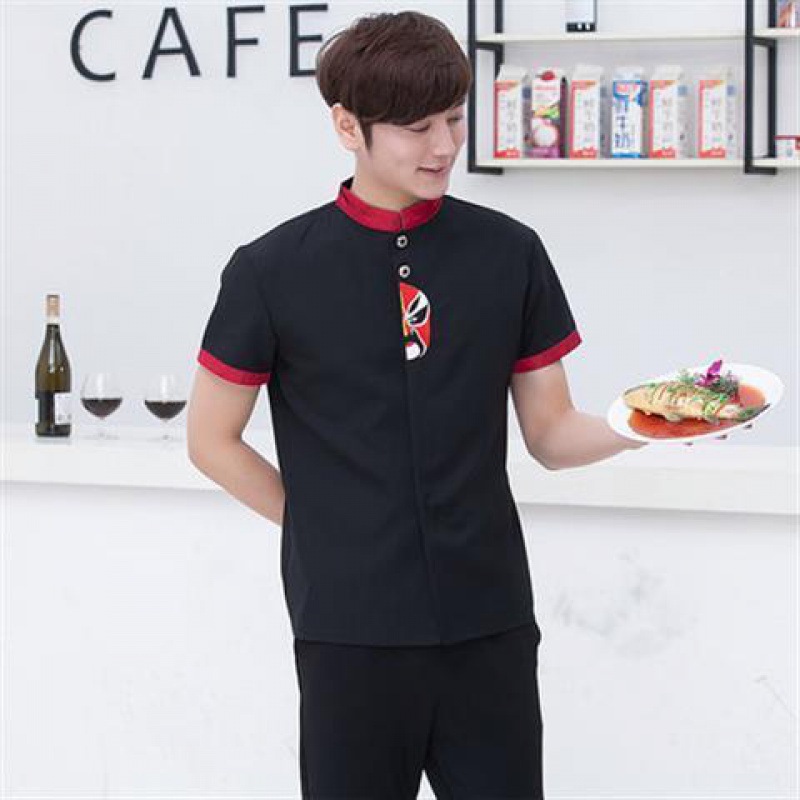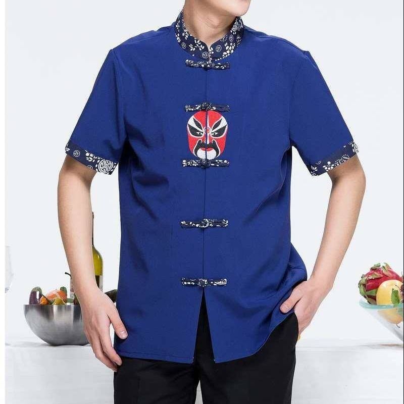 中式酒店服务员工作服短袖脸谱茶餐厅川菜馆特色餐厅火锅店工作服