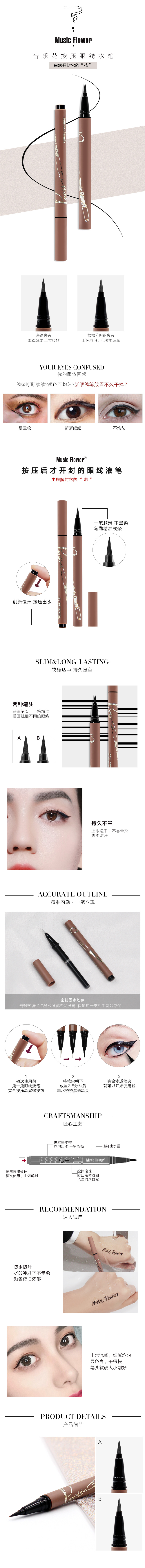 Music Flower防水不易晕染不易脱色持久快干液体眼线笔 A海绵头