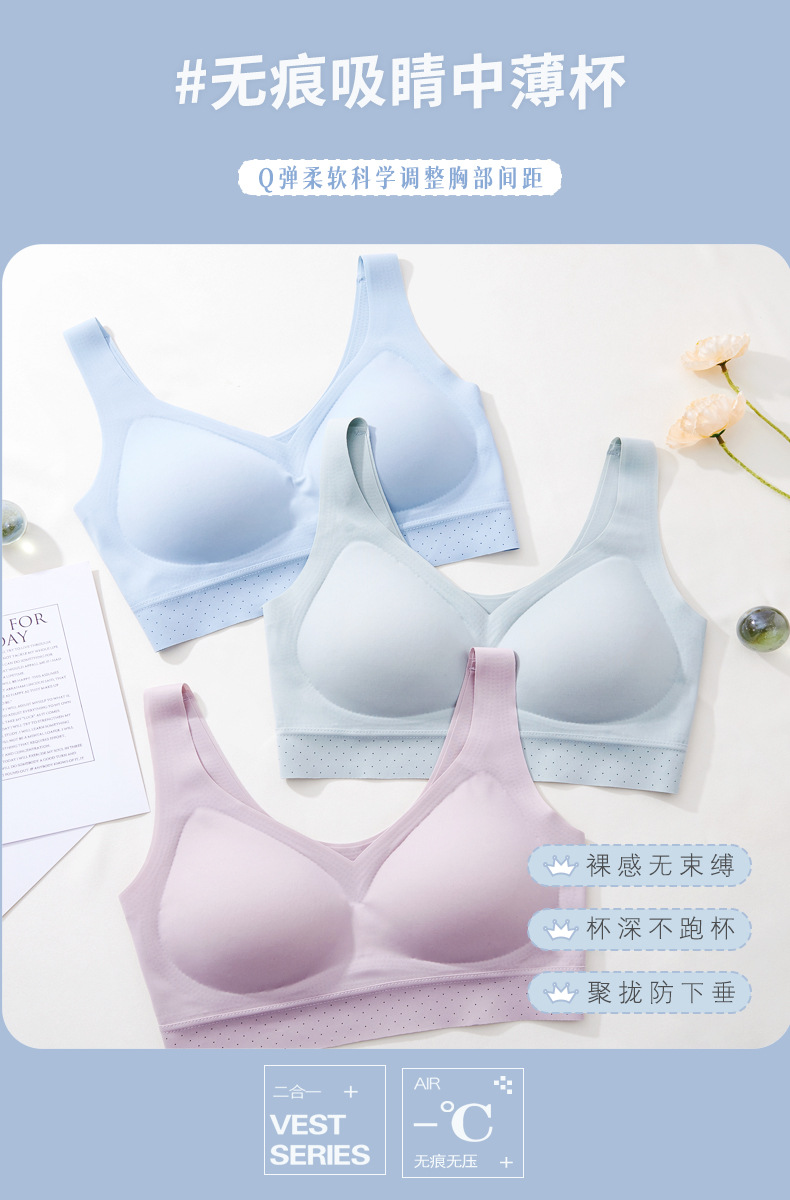 新款女士无痕抹胸波浪边背心黑科技一体式空气杯性感修身吊带内衣