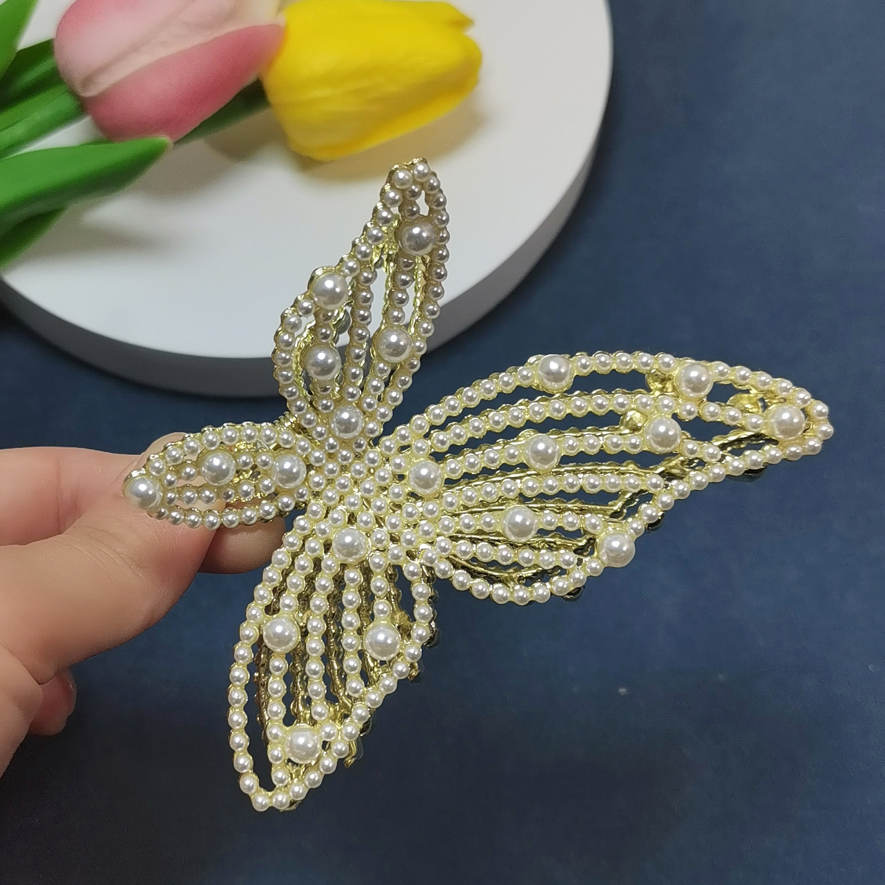 韩版新款蝴蝶珍珠发夹大号金属盘发鲨鱼夹发量多夹子头饰发卡批发