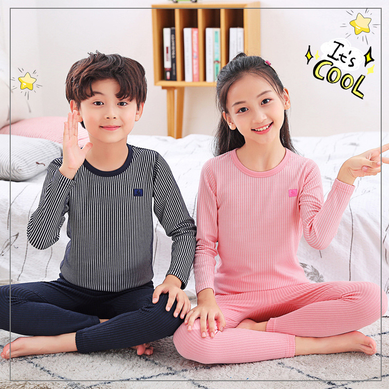 新款男童女童内衣套装德绒中大童圆领秋衣秋裤儿童直条打底衣