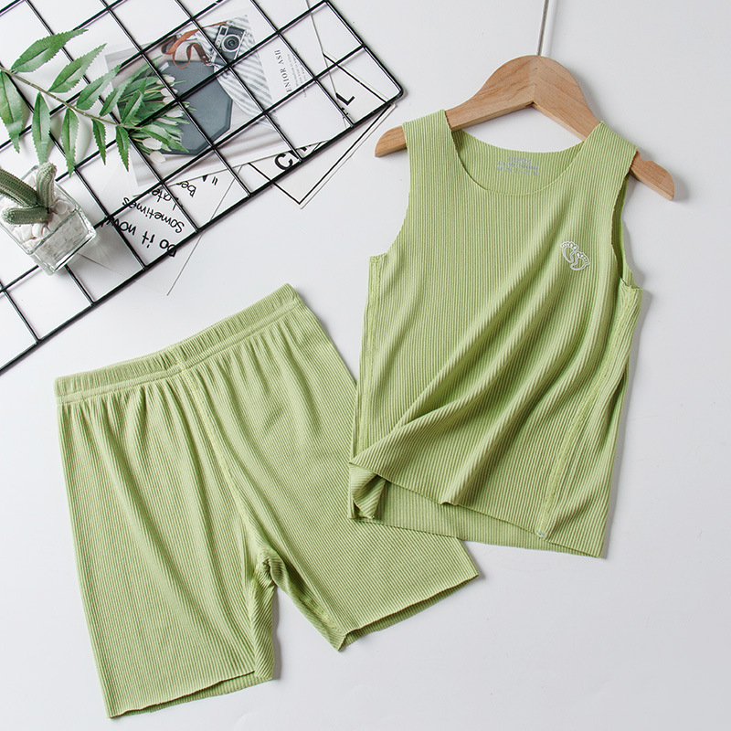 新款儿童随心裁背心套装糖果色童装夏季无 痕男童女童睡衣家居服