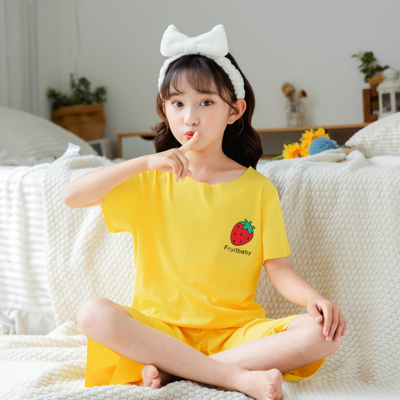 儿童家居服套装2022年新款男童糖果色睡衣睡裤女宝宝透气空调服