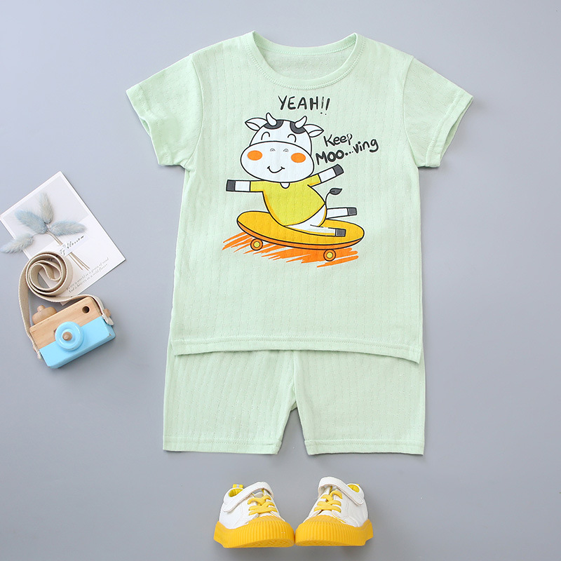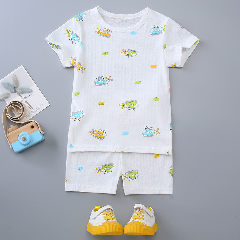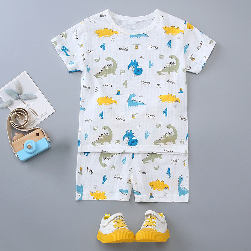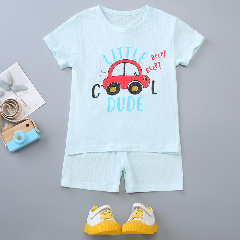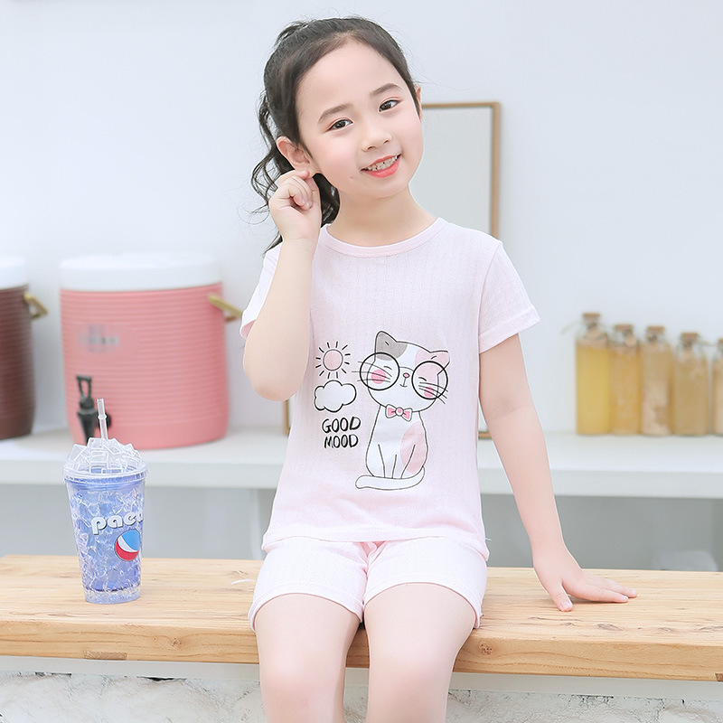 夏季儿童短袖套装中小童T恤短裤两件套宝宝空调服男女童家居睡衣