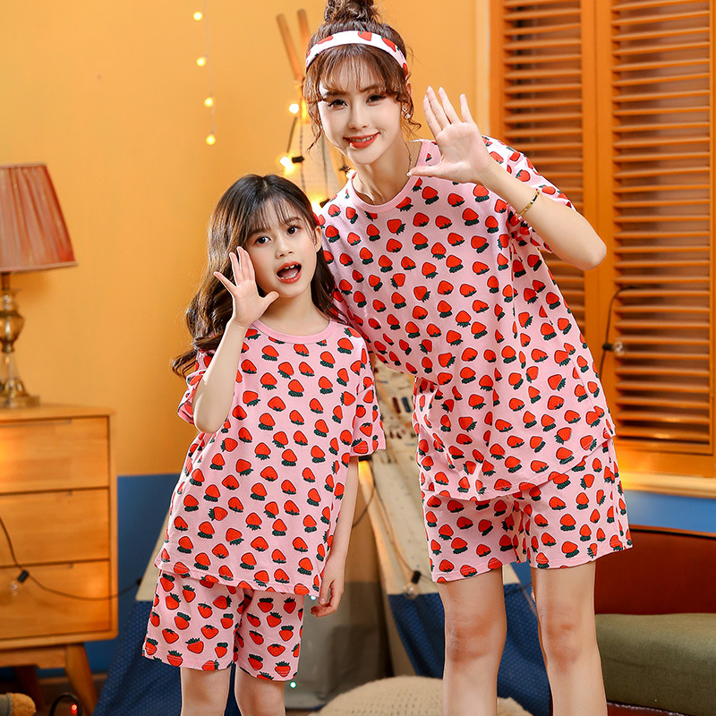新夏季母女短袖亲子装儿童卡通睡衣女童T恤短裤两件套宝宝家居服