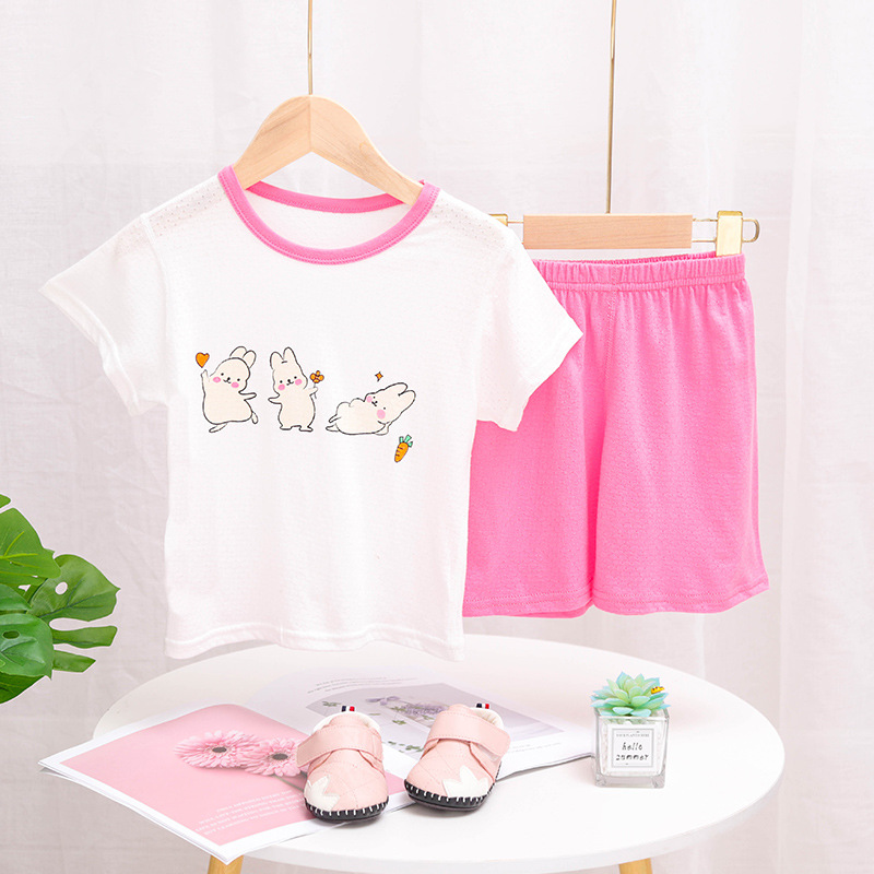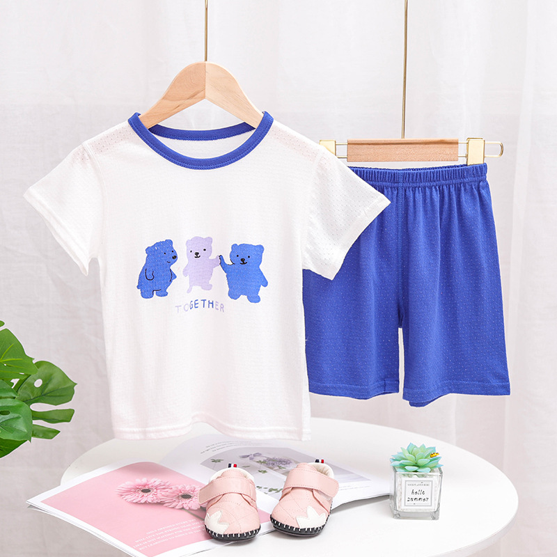 儿童短袖短裤套装棉宝宝薄款空调服男童女童网眼提花睡衣家居服