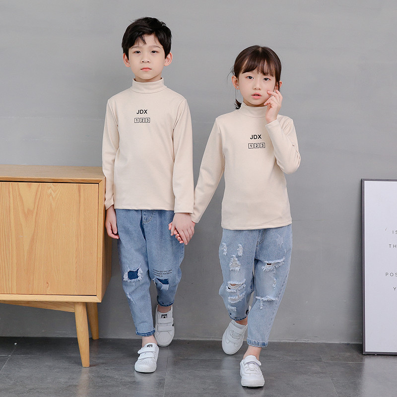 女童打底衫春秋内搭男童小童韩版新款长袖德绒半高领磨毛上衣