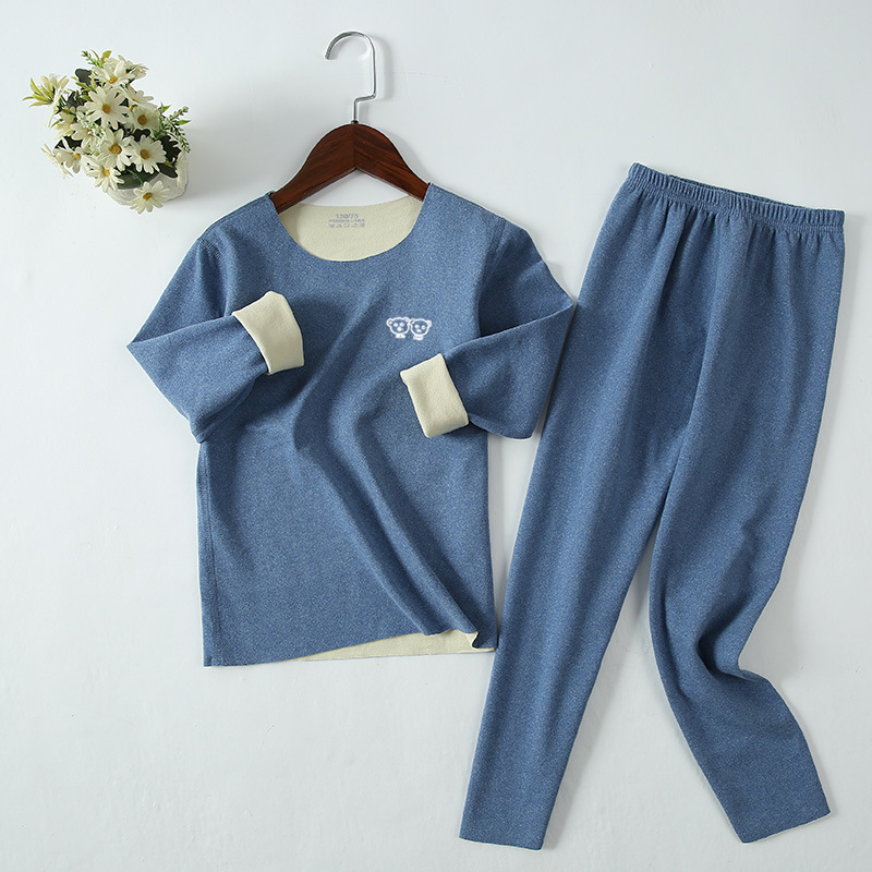 新款儿童AB面内衣套装男女童雪花绒双面双色内衣厂家现货批发