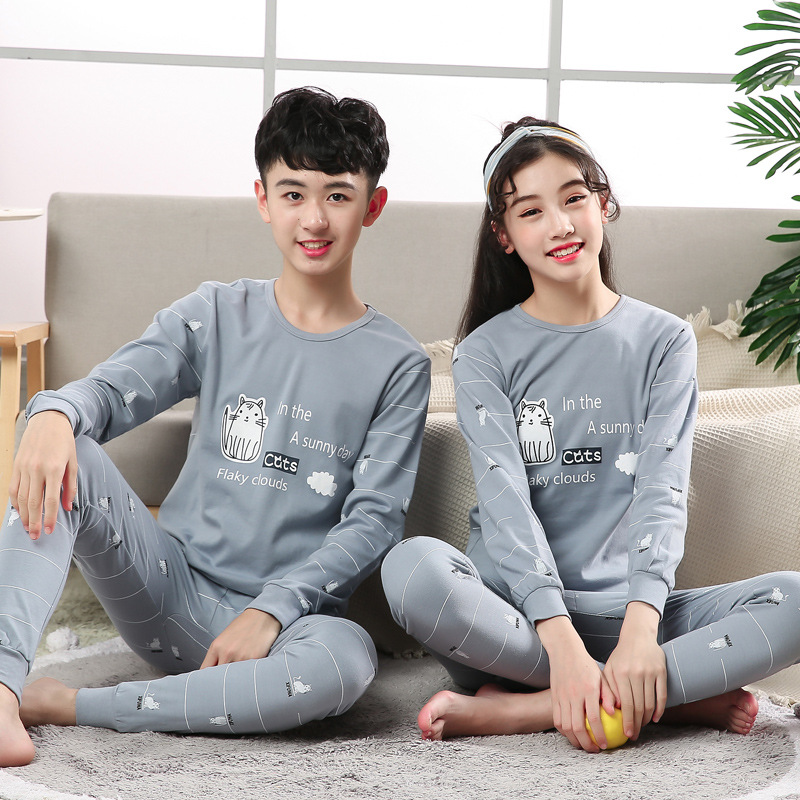 青少年秋衣秋裤套装棉质中大童学生打底棉毛衫卡通秋冬家居服