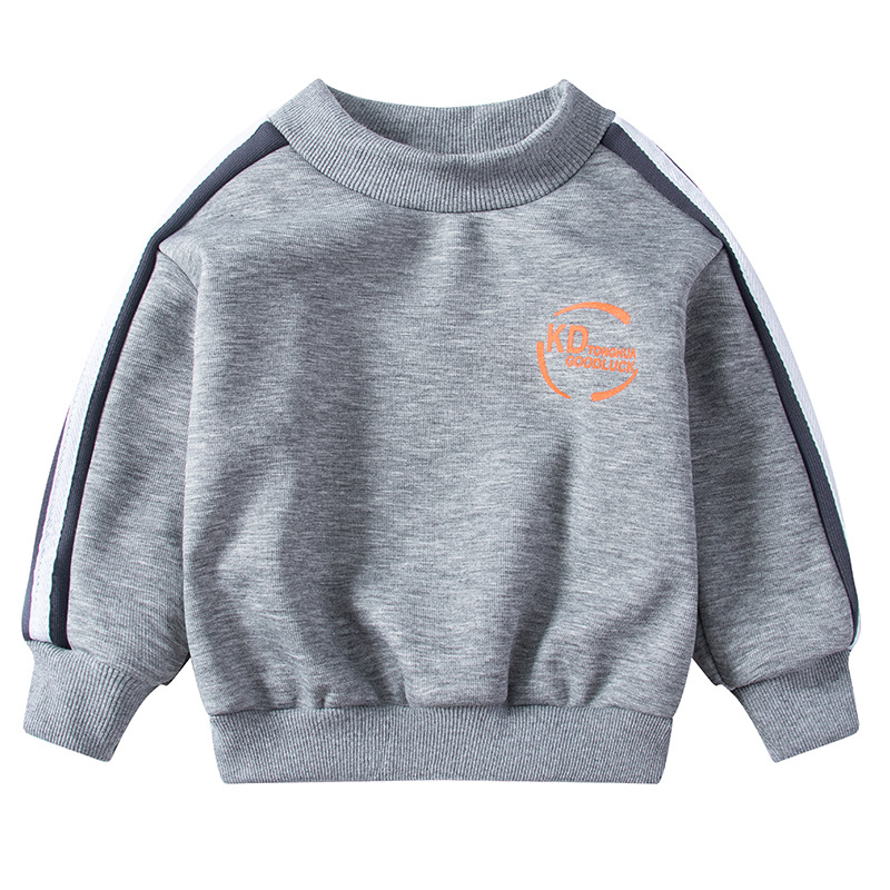 男童加绒卫衣灰色秋冬套头衫现货中小童圆领字母休闲上衣童装